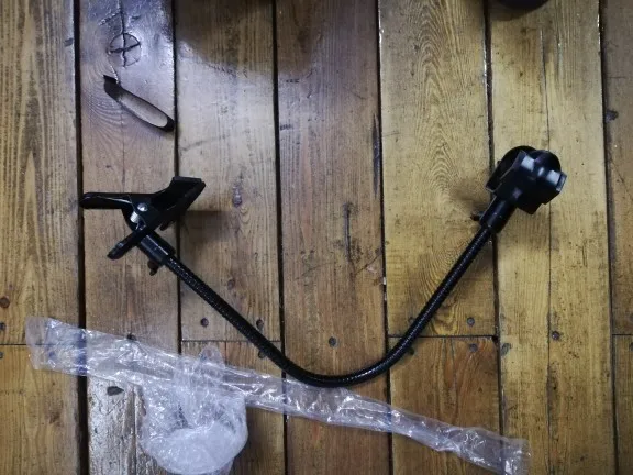 Товар пришел в целости, всё в целом работает. Из недостатков: 1. крепление кронштейна к столу согнуто не до конца в букву "П", скорее это сильно согнутая "Л" из-за чего плохо держится на вертикальной стенке. 2. по середине трубка имела небольшой залом, но это не критично. 3. сильный запах бензина, но за несколько дней вроде-бы выдохся.