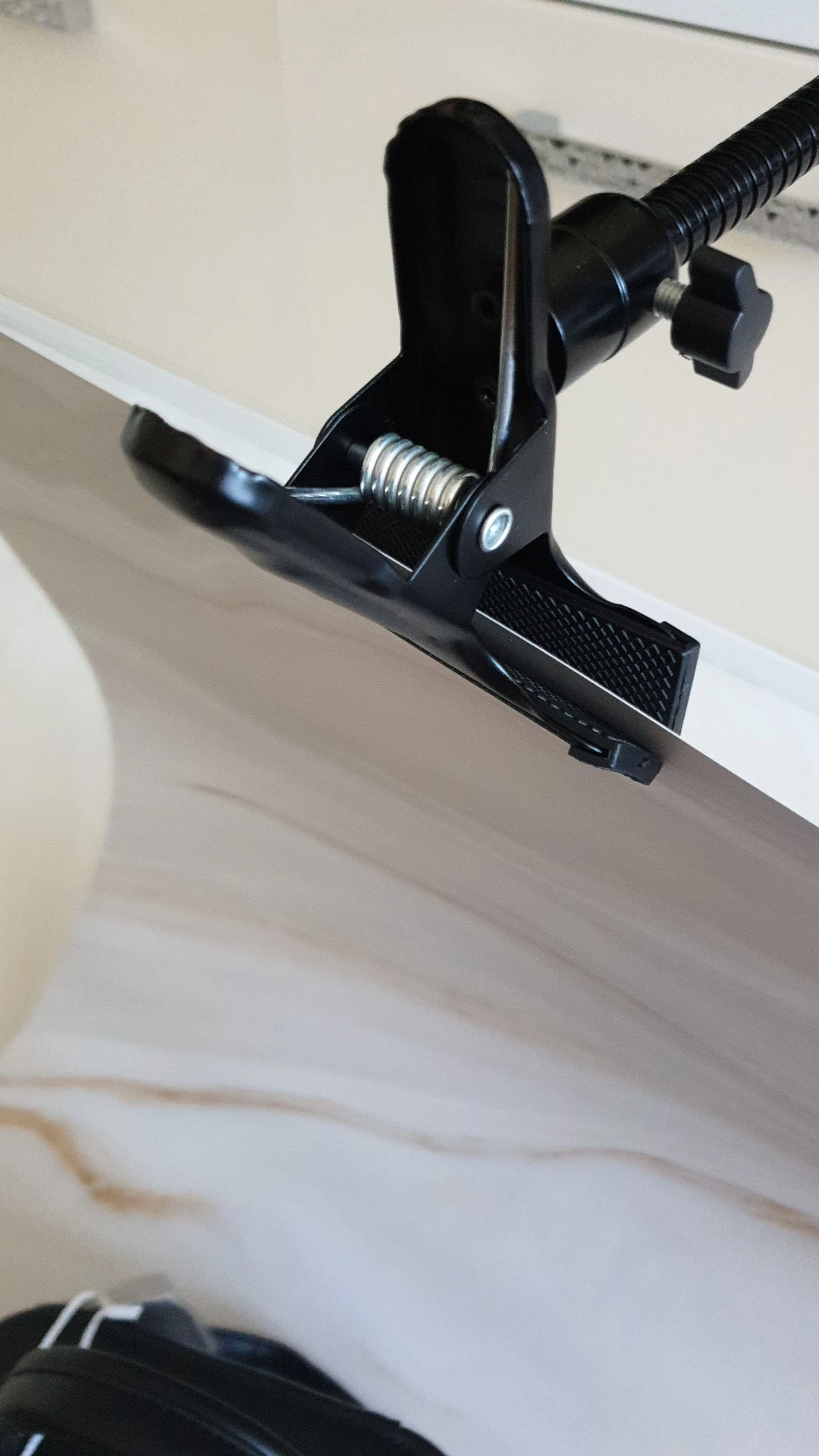 как уже было написано в предыдущих отзывах, не очень надежно крепится, если крепить за доску, стол. На штатив - трубку - крепится нормально. В целом, довольна. Заказ пришел за три дня.