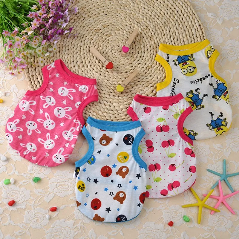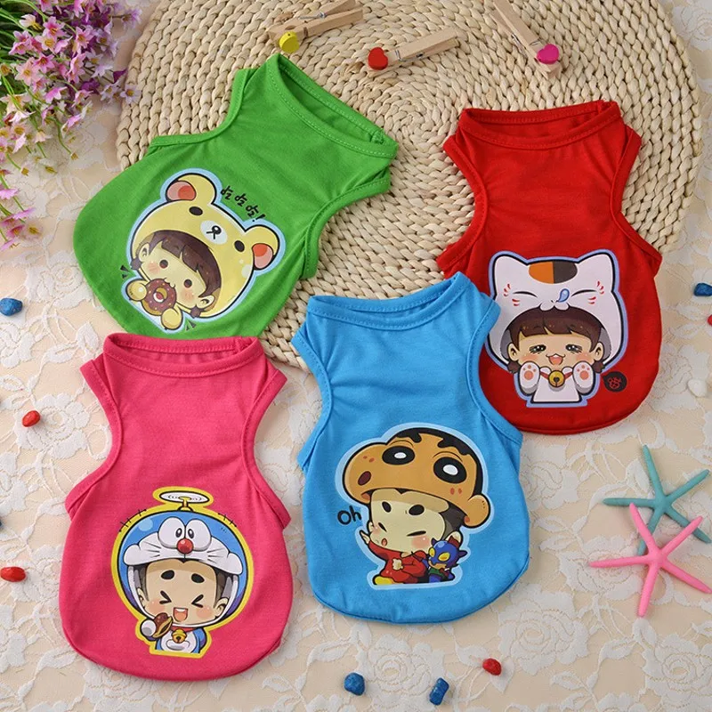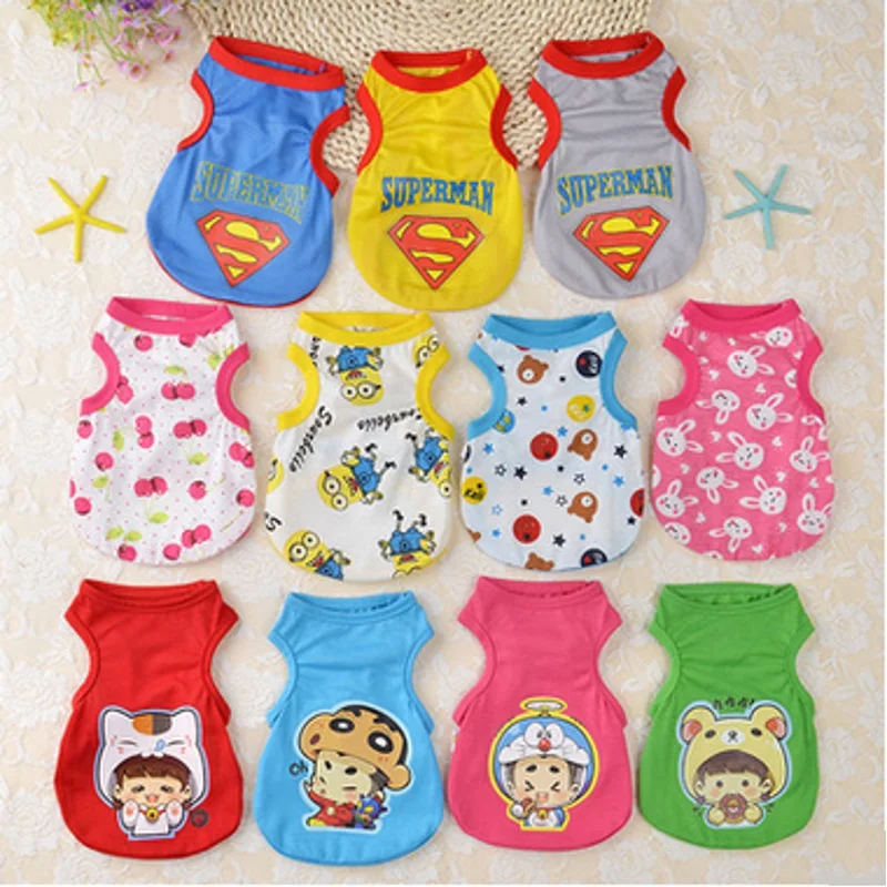 10 цветов, жилет для собак, летняя Милая футболка для маленьких питомцев С героями мультфильмов, одежда для собак, костюм для собак, футболка для щенков, кошек, бесплатная доставка