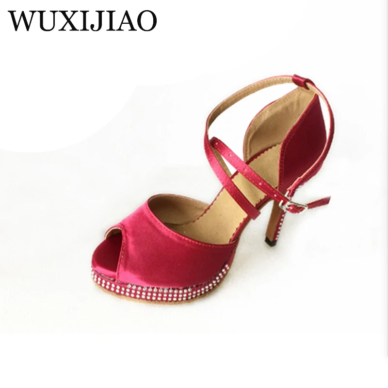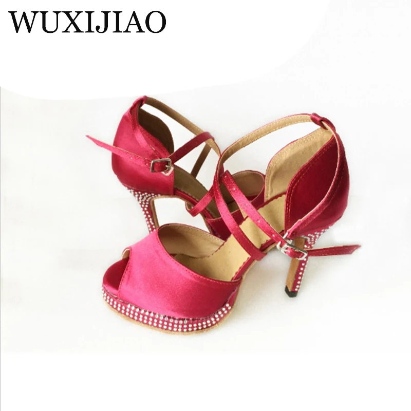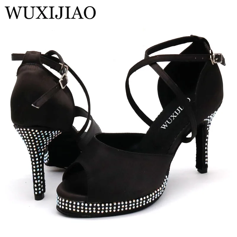 WUXIJIAO Бренд стразы черные атласные женские ультравысокие каблуки 10 см латиноамериканские танцевальные искусственные вечерние туфли