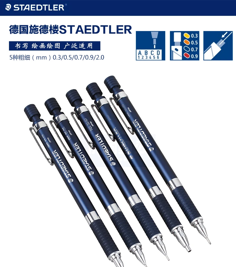 Набор графитовых механических карандашей 9250,30,50,70,9 мм 5 карандашей STAEDTLER 2,0 35
