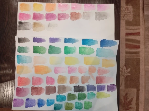 Карандаши пришли за 13 дней, упаковано все было хорошо, в несколько слоев защитной пленке, но видимо при транспортировке как-то умудрились деформировать угол коробки, но не критично. Могу выделить как плюсы так и минусы. Из плюсов: - В наборе большой выбор цветов, и похожих по оттенку карандашей, практически нет - Материал корпуса матовый и выглядит довольно дорого - Большая часть карандашей мягкие, очень приятно ими рисовать - Хорошо размываются, дают насыщенный цвет - Достойно смешиваются Что по поводу минусов: - Круглый корпус приводит к тому что они катаются по столу и есть риск того, что упадут и повредиться грифель внутри карандаша - Некоторые карандаши царапают бумагу, их всего 4-5 штук, но все равно не очень приятно - Маркировка на самом карандаше и тот цвет который он даёт на бумаге не совпадает, если и совпадает то скорее как исключение из правил - Некоторые карандаши размываются не до конца, остаются следы карандаша под слоем акварели, у металликов с этим совсем все плохо.