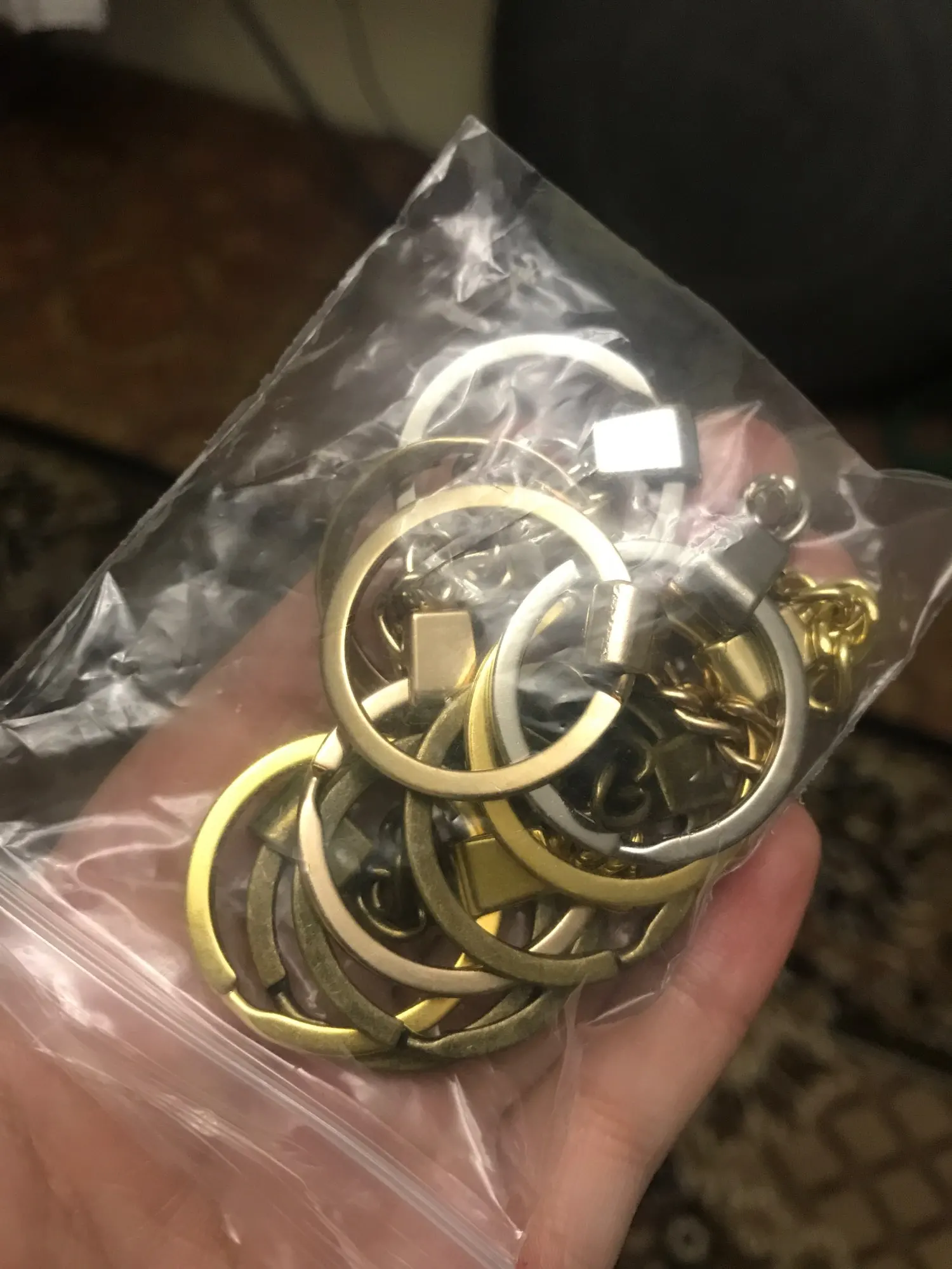Очень классные колечки, я довольна! Они крепкие и плотные, выглядят очень качественно и дорого. Доставка до Московской области, около месяца, пришло в сборной посылке, хорошо упаковано