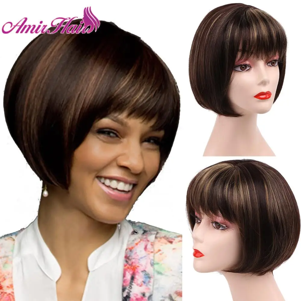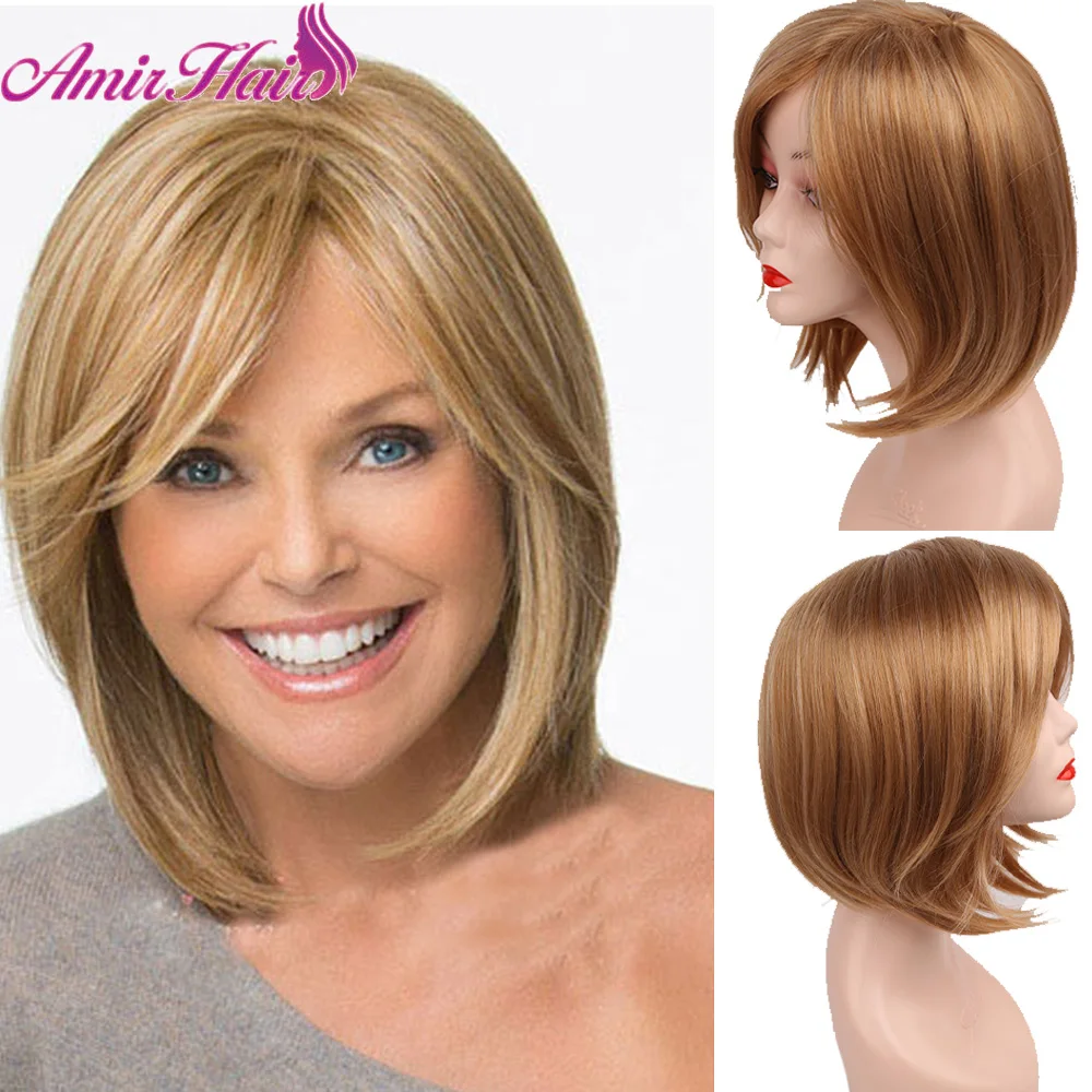 Парик Aimr из натуральных прямых синтетических волос, термостойкий для косплея, с короткими волосами, блонд, коричневый, смешанных цветов, с эффектом омбре, шиньон