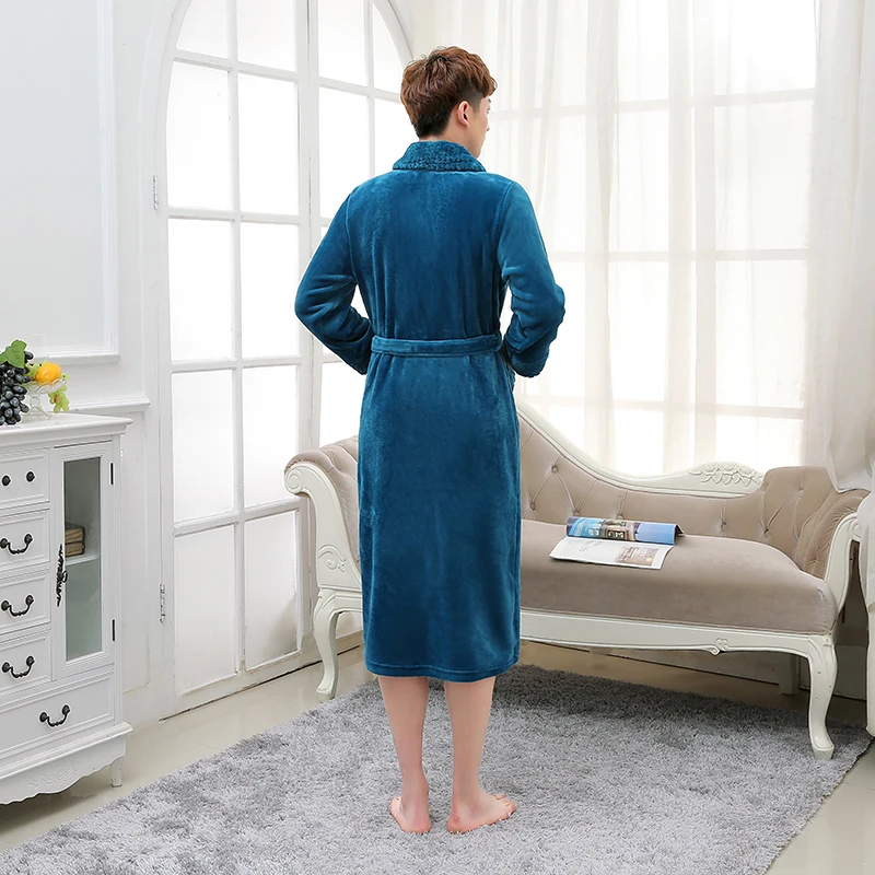 Халат фланелевый мужской, удлиненный, зимний, вафельный