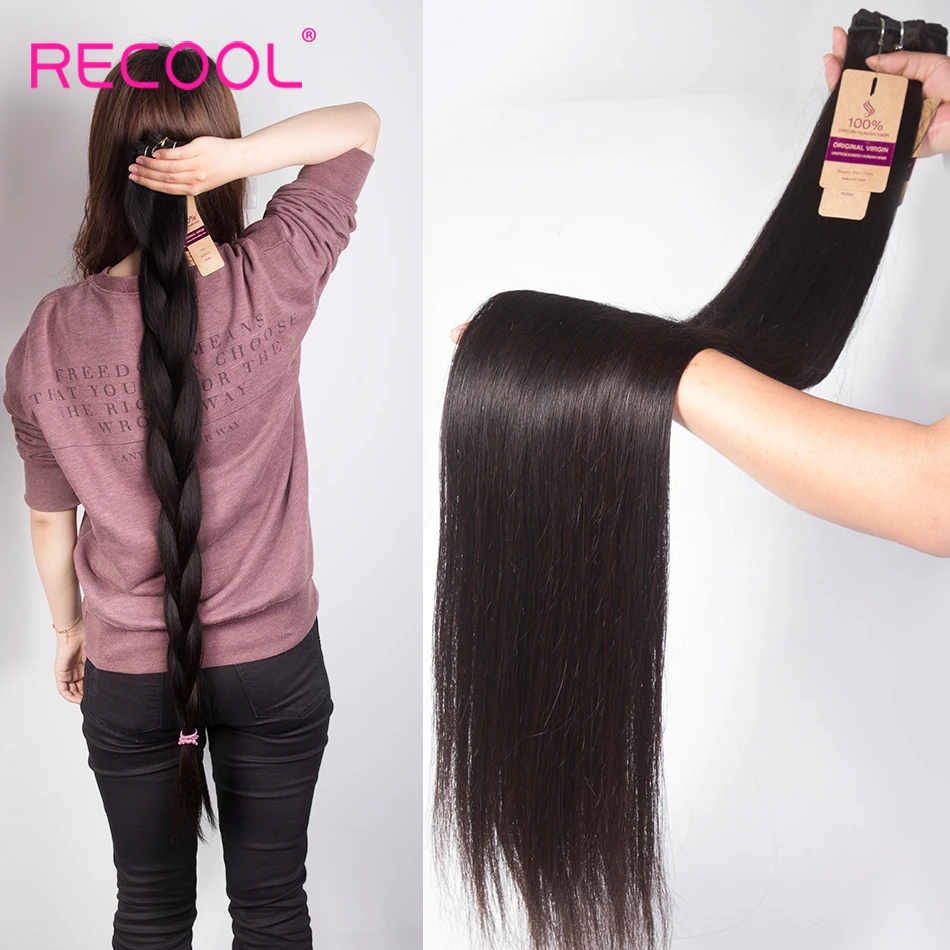 Recool 28 дюймов 30 32 38 40 дюймов Пряди с закрытием прямые человеческие волосы для наращивания бразильские волосы плетение пряди с закрытием