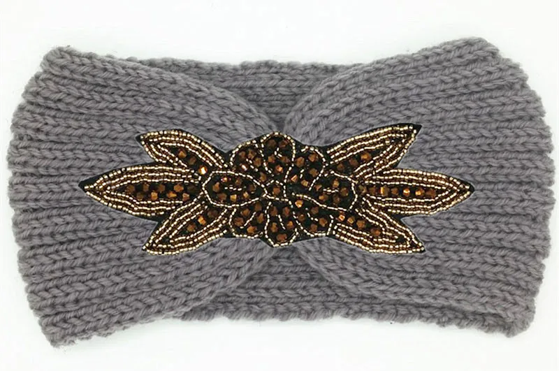 Очень красивая ручная работа, украшенная бусинами, на одном дизайне вязаной шерстяной повязки.