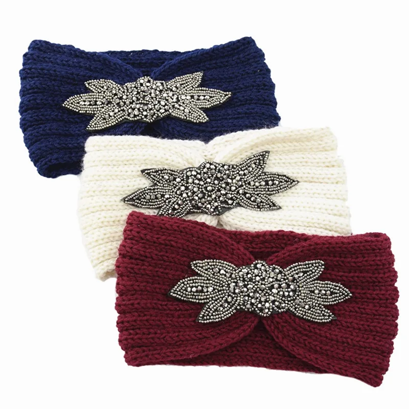 Зимний тюрбан, женские аксессуары для волос Rinestone для девочек, повязка на голову, повязка на голову, обогреватель для ушей, бандана, винтажный ободок, головной убор