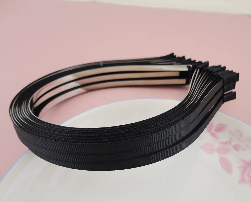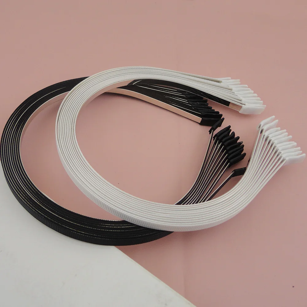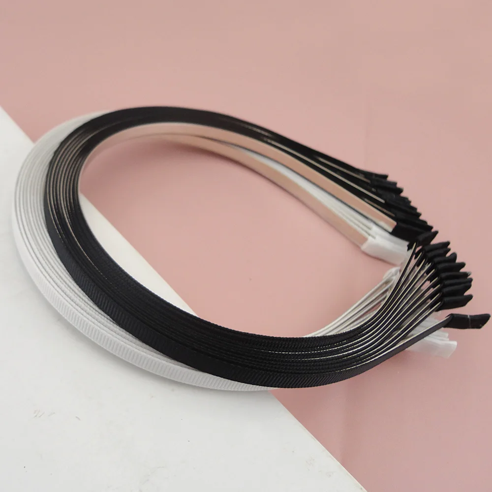 10 шт 5 мм черный корсажная лента, покрытая обычные металлические повязка на голову, белое вышитое провода с головными повязками плотная ободки для волос DIY аксессуары для волос