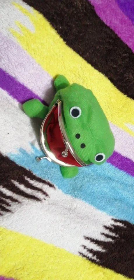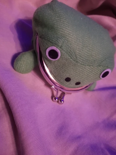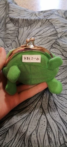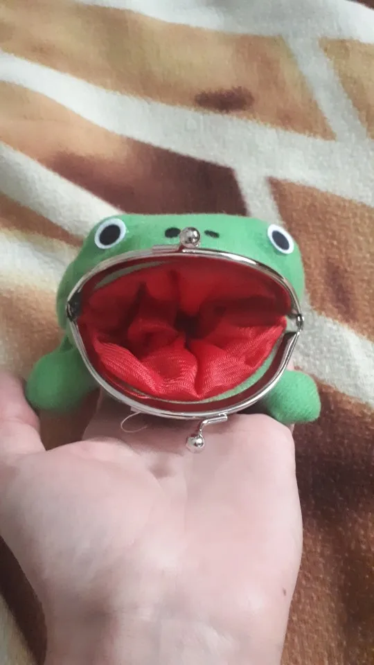 ОЧЕНЬ милый кошелечек. Он для монет, так как (по крайней мере русские) бумажные купюры в него нормально не влезут. Сам по себе небольшой, как в аниме от денег не надуется, однако собрать в себя большинство монет с вашего кармана он сможет. Не слишком вместительный, зато очень мягкий и приятный! Сама ткань тоже не жесткая, глазки наклеены, носик и зрачки нарисованы краской. Нитки не торчат, ничего не отклеивается, именная бумажка Наруто напечатана в хорошем качестве и тоже крепко пришита. Металлическая часть на первый раз ОЧЕНЬ тугая, но со раза открывается уже легко. Я не очень понимаю как она крепится к лягушке (4е фото), видимо просто зажимает ткань, так что нужно быть осторожным и не дергать эту часть. К тому же она немного "гуляет" сбоку, из-за отсутствия крепежа. Мне очень нравится, советую <3