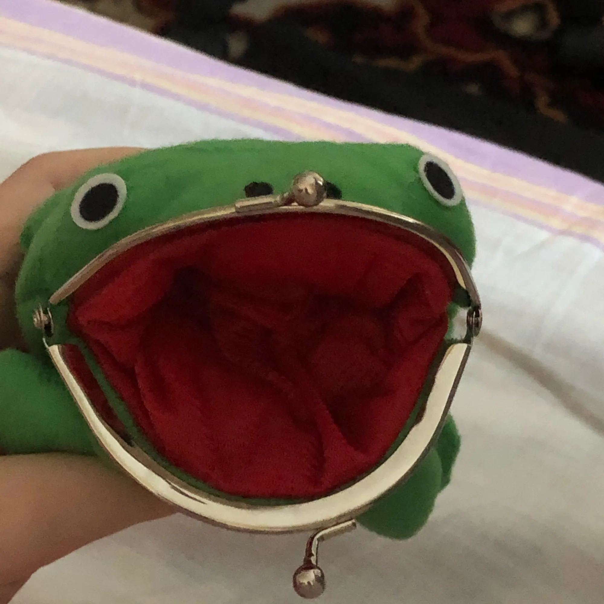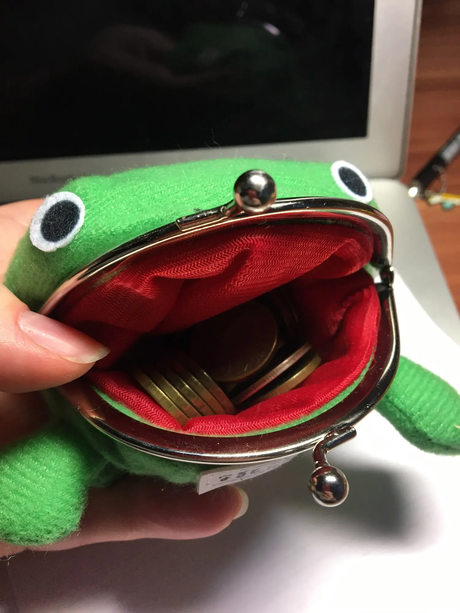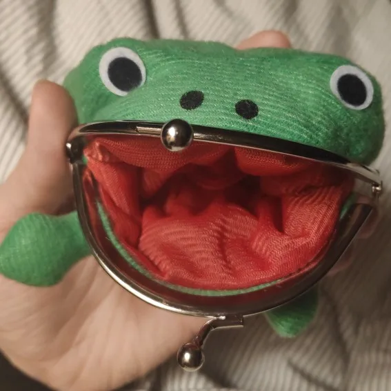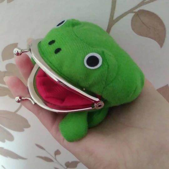 Забавная жабка, вместительности почти никакой но для ребёнка таскать мелочь самое то, единственное что, это зажимы туговаты