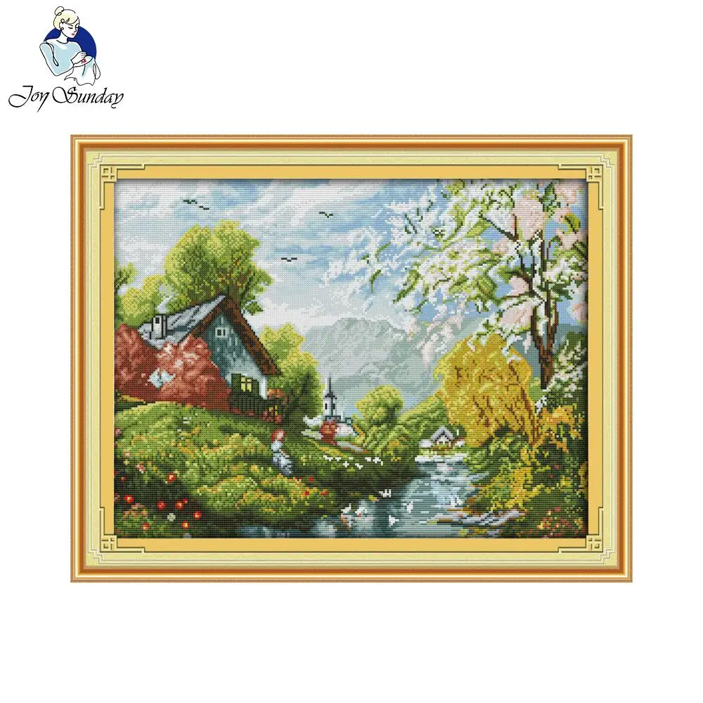 Joy Sunday набор для рукоделия DIY крестиком Набор для вышивки красивый речной и небесной вышивка картина крестиком Настенный декор