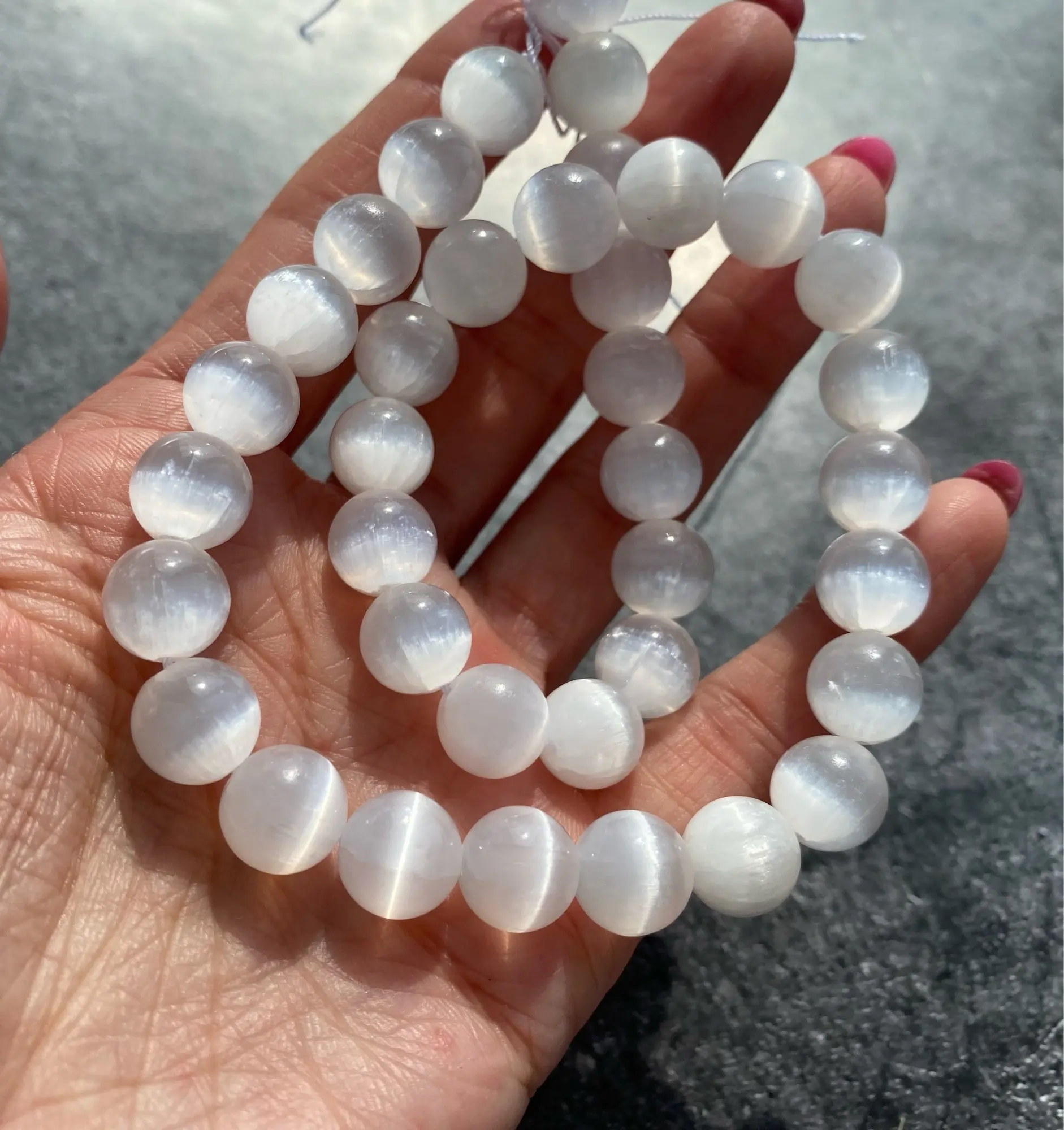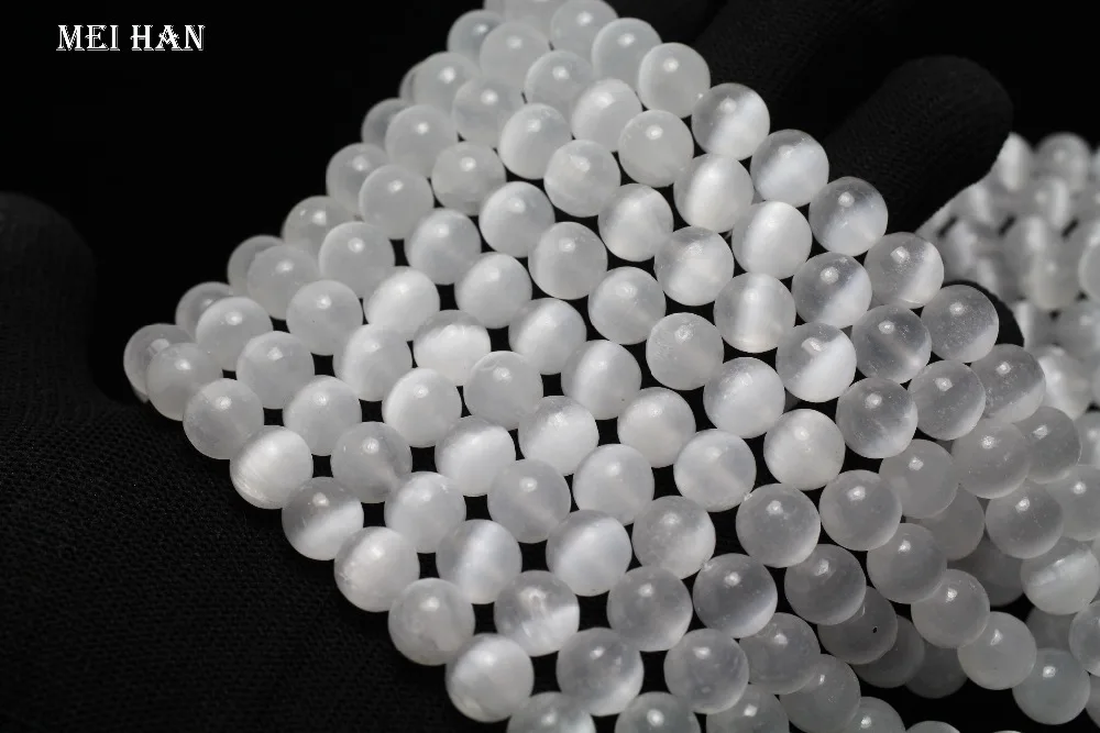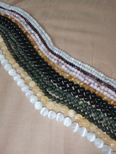 Примечание: материал селенита/кальцита очень мягкий, некоторые из них могут быть даже соцарапаны ногтями. Поэтому они имеют более не круглые бусины, чем другие камни.