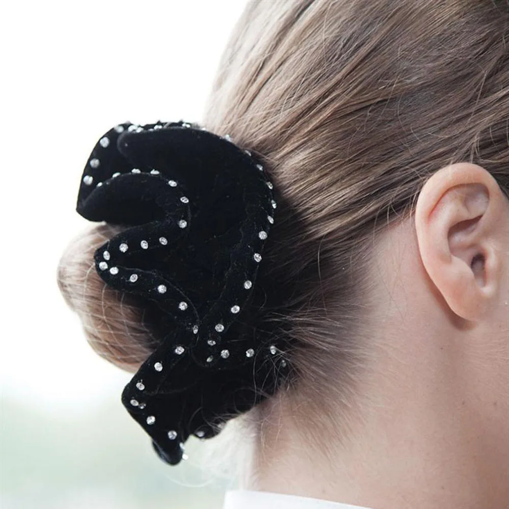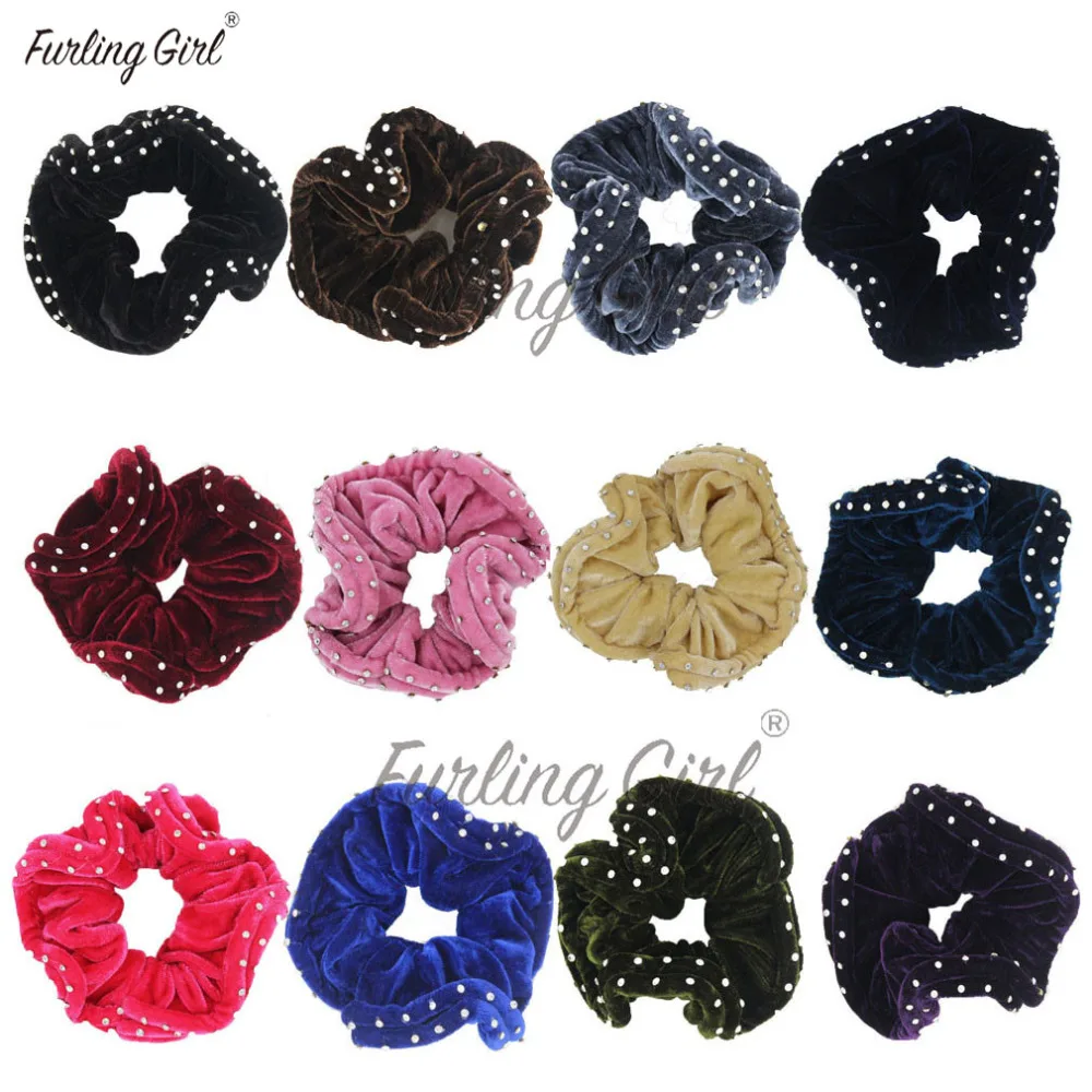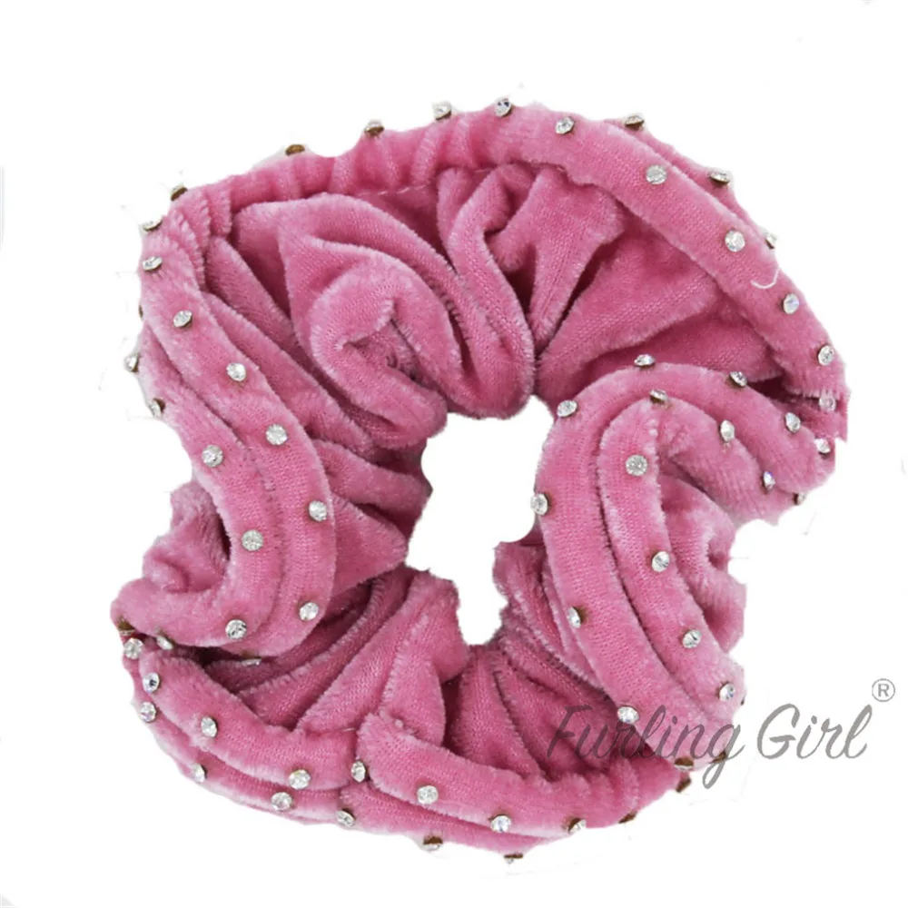 Женская бархатная резинка для волос Furling Girl, двойные стразы для танцев, модные аксессуары для волос, очаровательный держатель для хвоста, 1 шт.