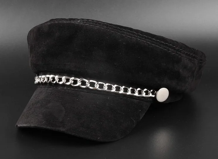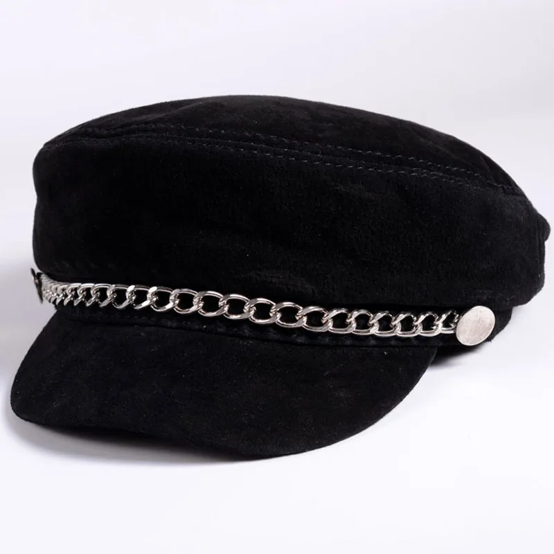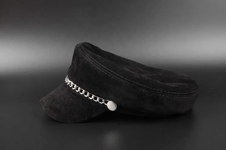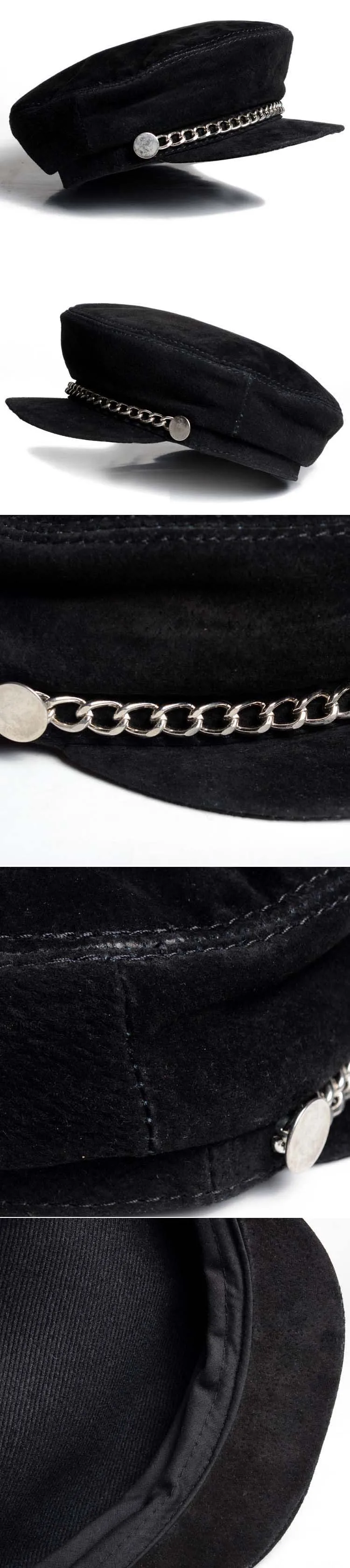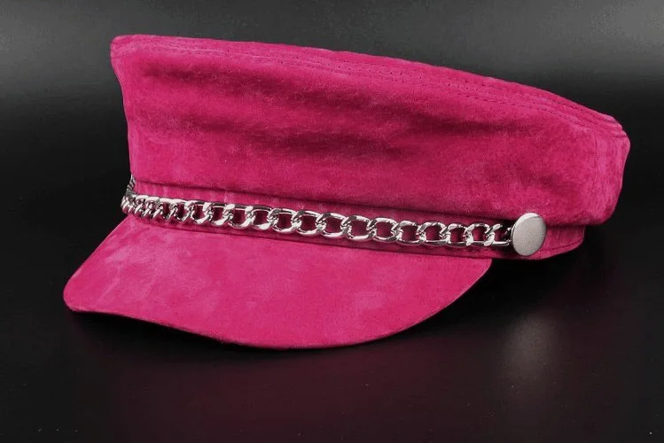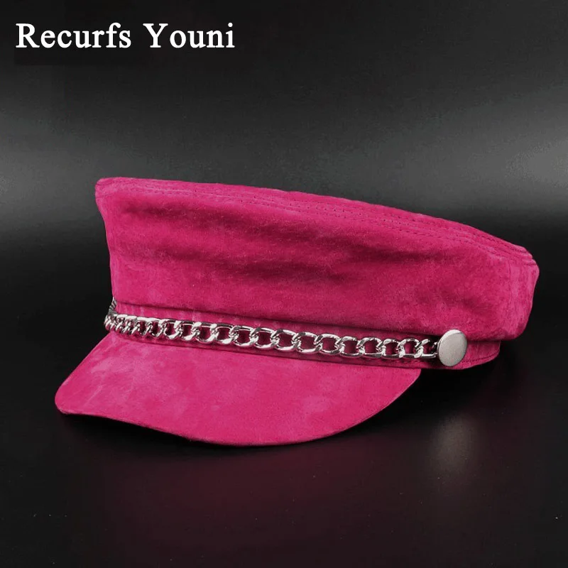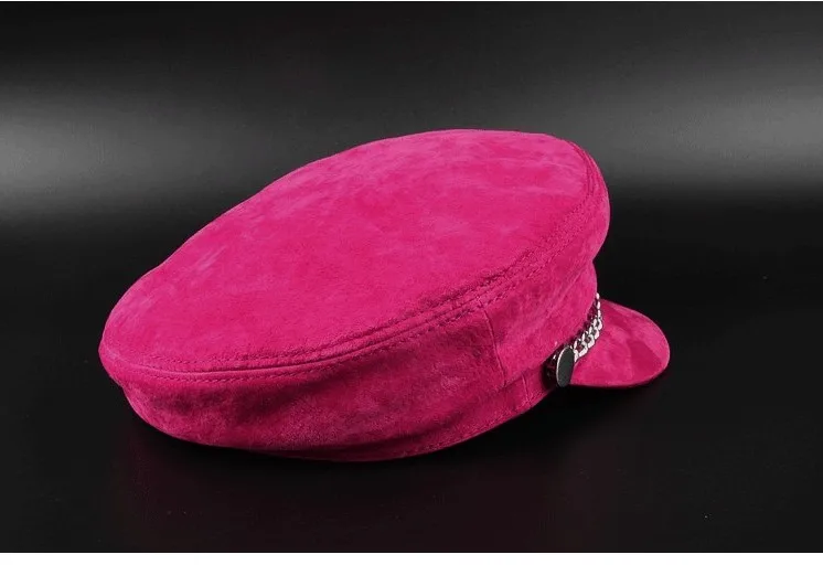Зимний женский берет из натуральной кожи с серебряной цепочкой RY0108 2021, женскаяСтуденческая замшевая шапка из свиной кожи Красногорозового цвета, шапка в стиле хип-хоп