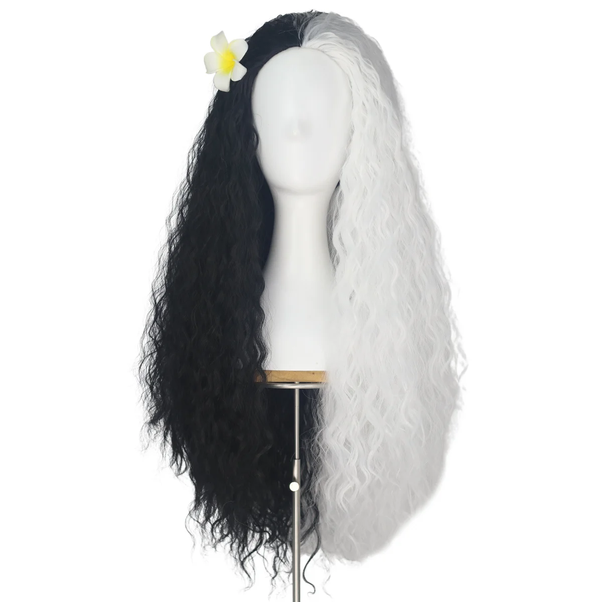 Miss U волосы женские длинные курчавые вьющиеся темно-коричневые Моаны черные волосы Хэллоуин косплей костюм парик для девочек и взрослых с цветком
