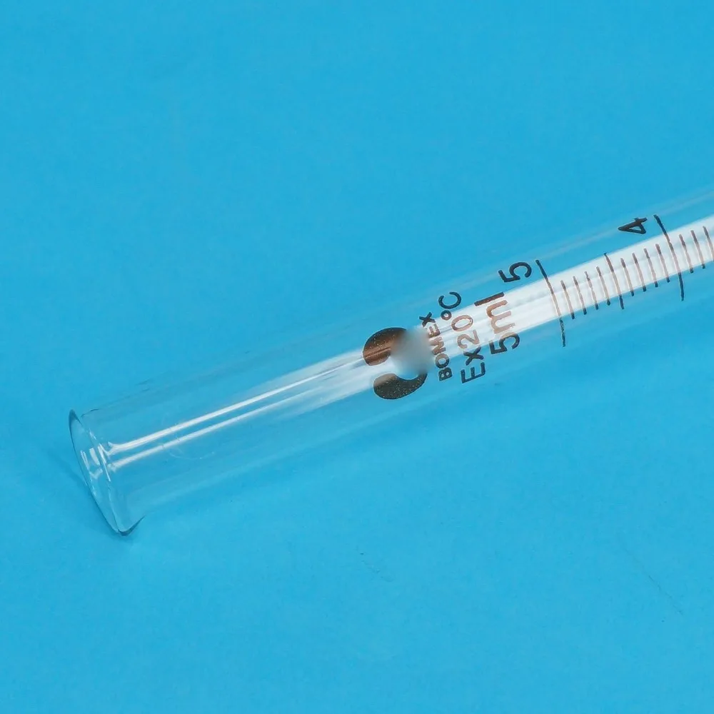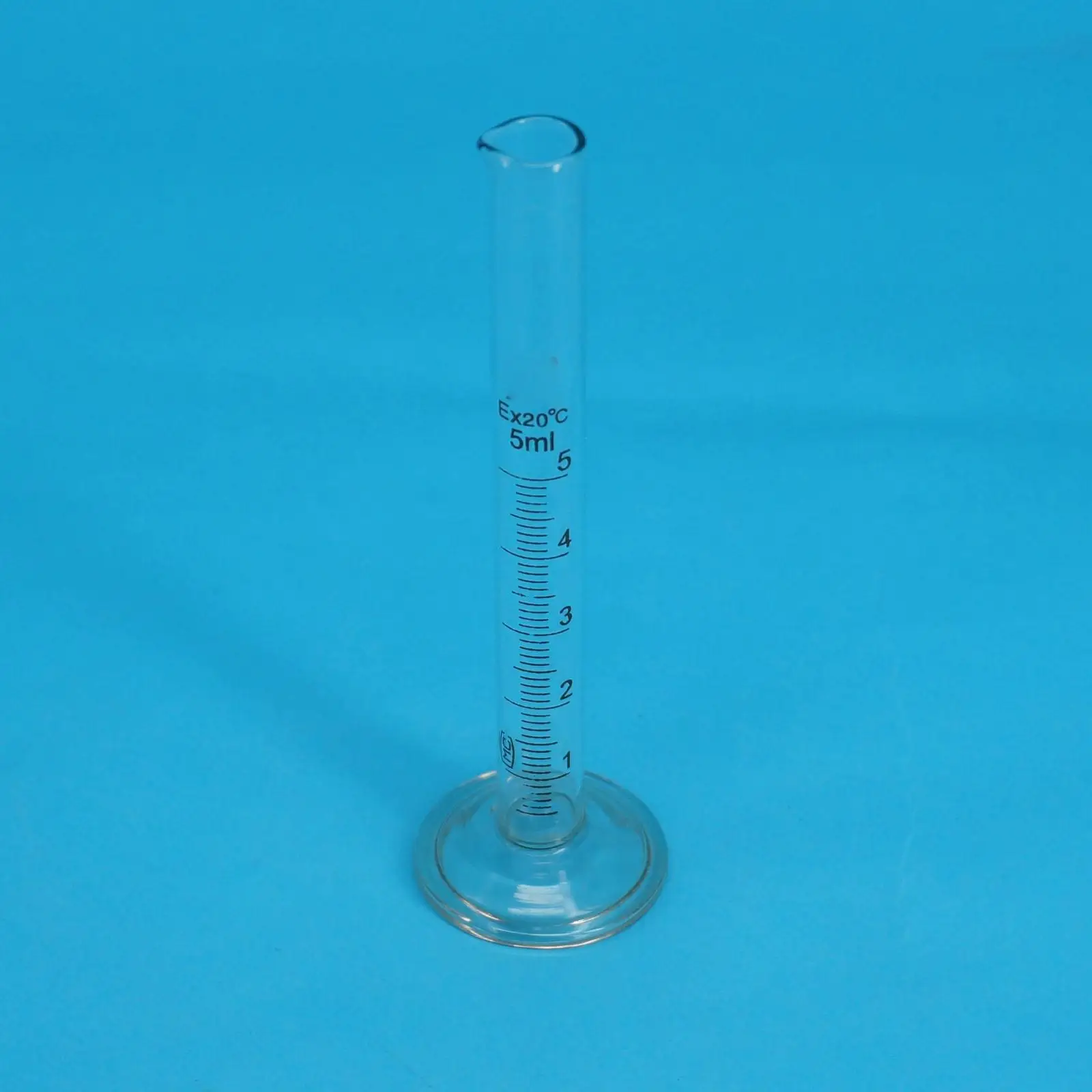 Лабораторный стеклянный мерный цилиндр 5 мл, высота 110 мм с носиком, стеклянная посуда