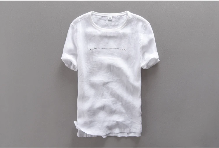 Футболка мужская с круглым вырезом, стильная тенниска из чистого льна с короткими рукавами и надписью, повседневная майка, рубашка из белого льна
