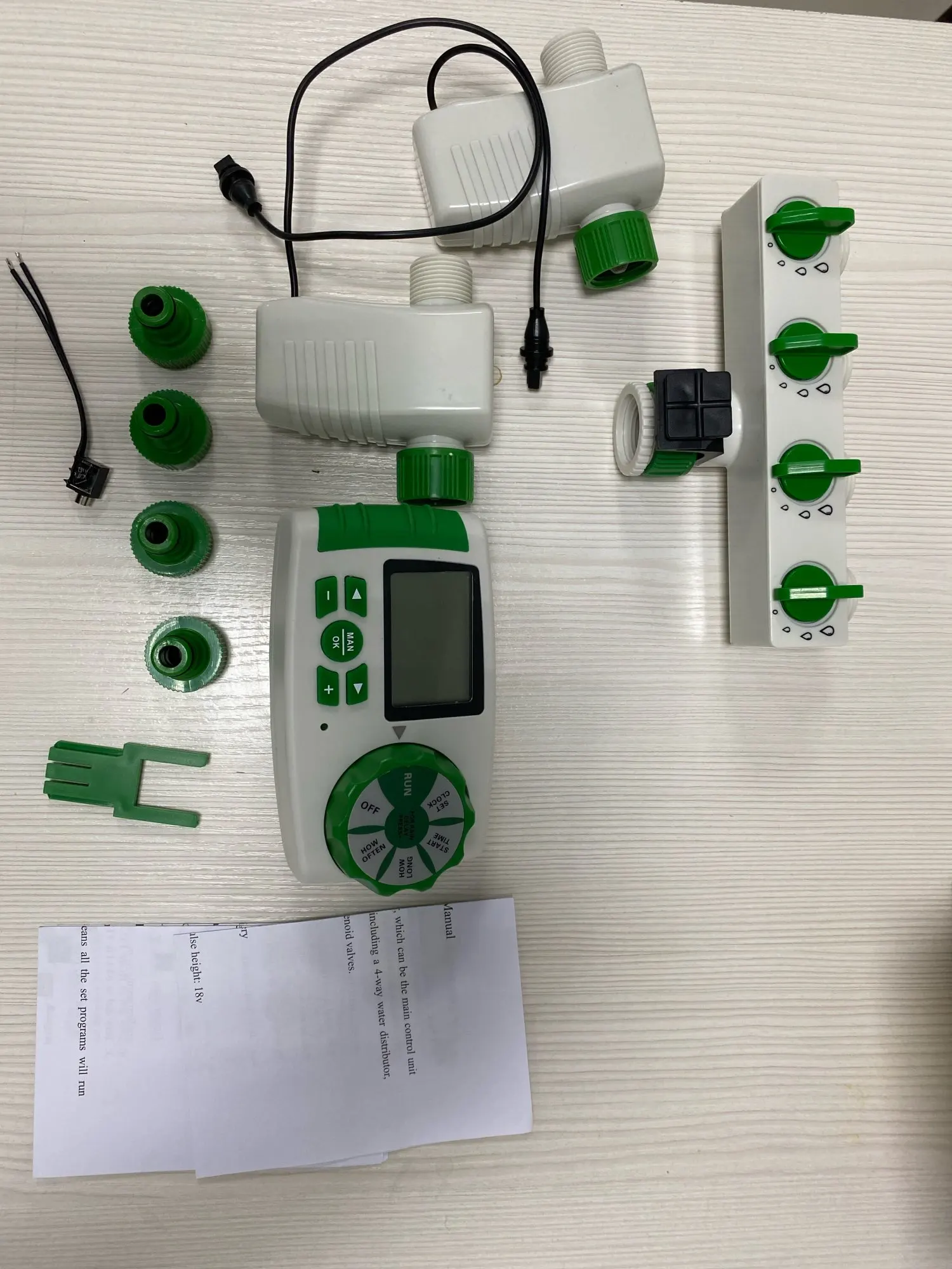 заказ пришел курьером от iml к двери через день. продавец на смс отвечает мгновенно, выслал на эл. почту инструкцию на почту! Я одно с кандачка не нашла: думала, что работа этого счетчика через сеть/ розетка, я ее не нашла; только место для батареек, что меня лично не устраивает. какая то фигнюшка с двумя проводками оголенными на концах - не нашла куда их втыкать и для чего. И я считала, что вода будет проходить через счетчик,как у нас в квартирах. Вода вообще не проходит через счетчик, видимо регулируется вот этими четырьмя коробочками с датчиками( в наборе их всего два). вообщем протекать там нечему, а по части электрической сети ( предполагаю12 v) надо разбираться. Конечные соски под стандартный полдюймовый выход для шлангов. фото вмещается только 5 не самые удачные. Комплектация полностью как заявлена на сайте.