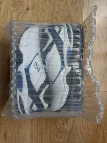 Доставка до Уфы чуть больше 2 недель, упаковка хорошая. Кроссовки отличные, хорошо проклеены и прошиты, только на тыльной стороне язычка одного из кроссовок немного нитки торчат. В размер попал идеально. Думал, что на носке вырублены отверстия для вентиляции, но они оказались декоративными, ну да ладно. В целом покупкой очень доволен! Рекомендую!