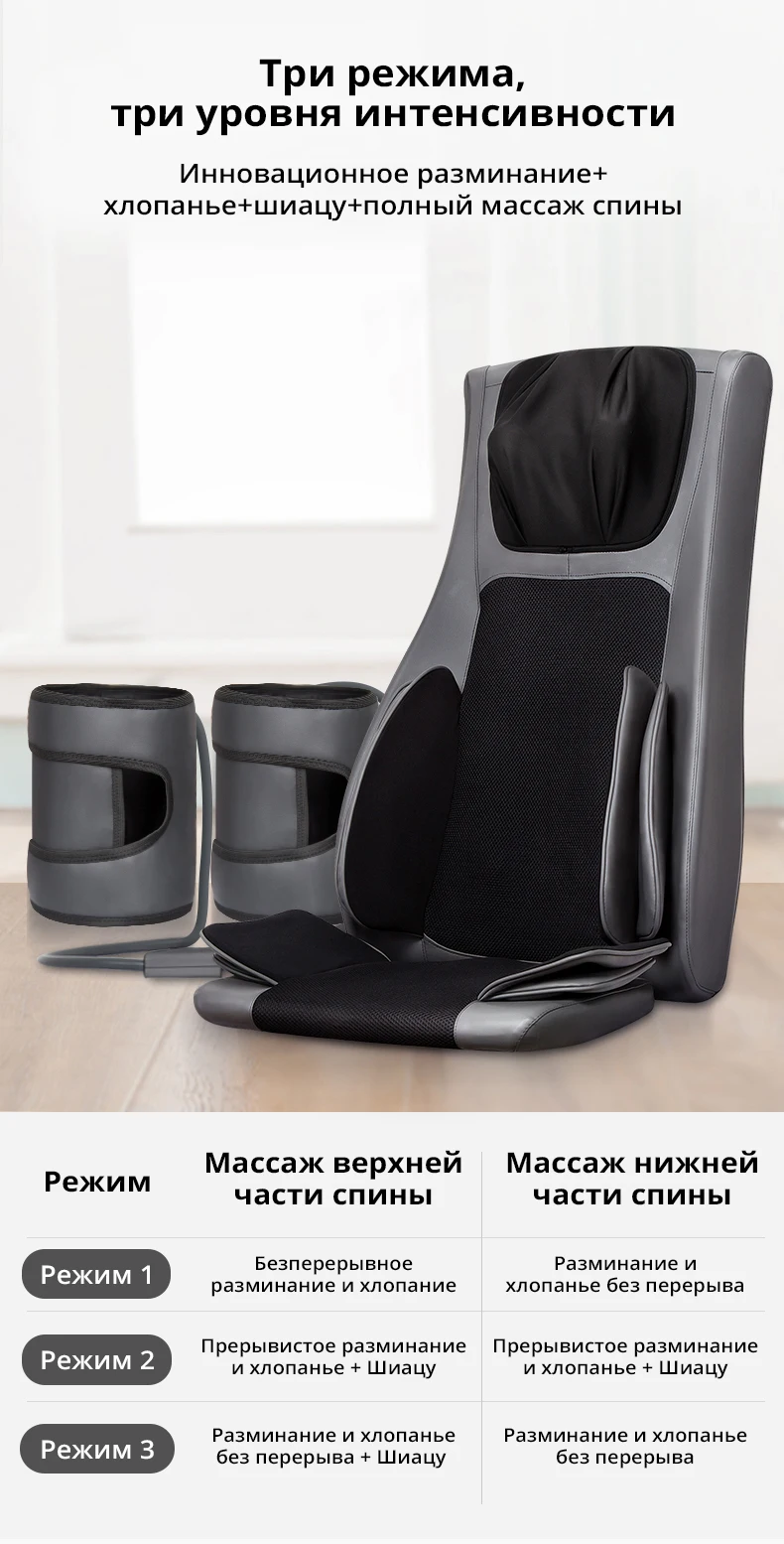 при первом включении в работу не работают все режимы массажа спины . Буду оформлять возврат товара и денег . Проверяйте перед отправкой исправность Вашего товара .