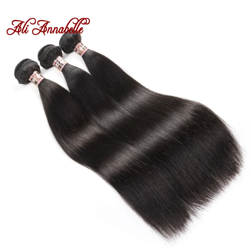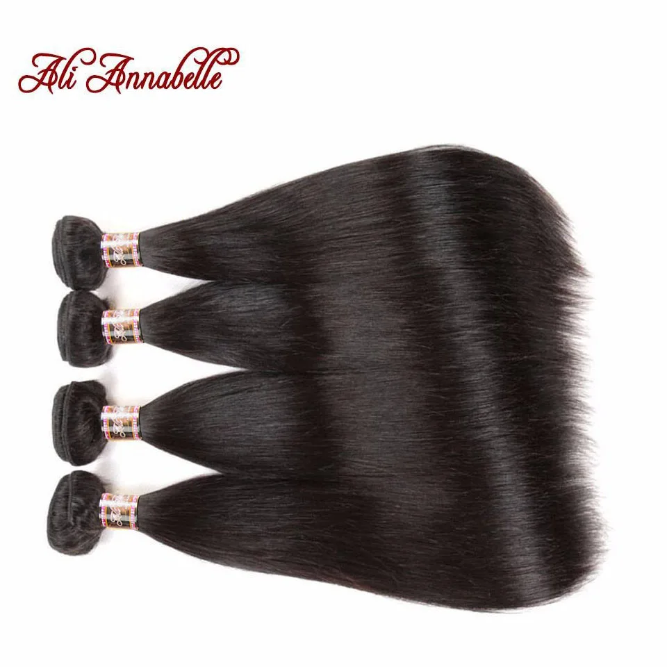 Прямые малазийские человеческие волосы ALI ANNABELLE, 134 шт., натуральный цвет, 100% Реми, пряди ди волос 10-28 дюймов, прямые