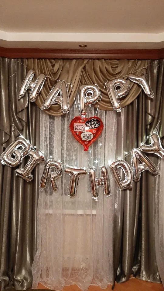 огромное спасибо за заказ. пришел быстро. буквы красивые. все целое. есть трубочка для надувания и ленточка,чтобы вешать буковки.