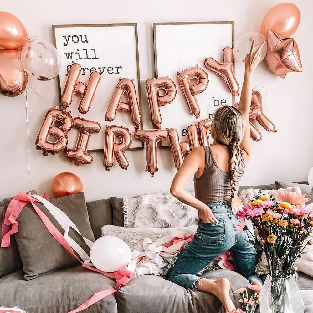 Надувные шары из фольги розового золота, письма с поздравлениями с днем рождения гелиевые, баннеры для вечеринки на день рождения, 1 комплект