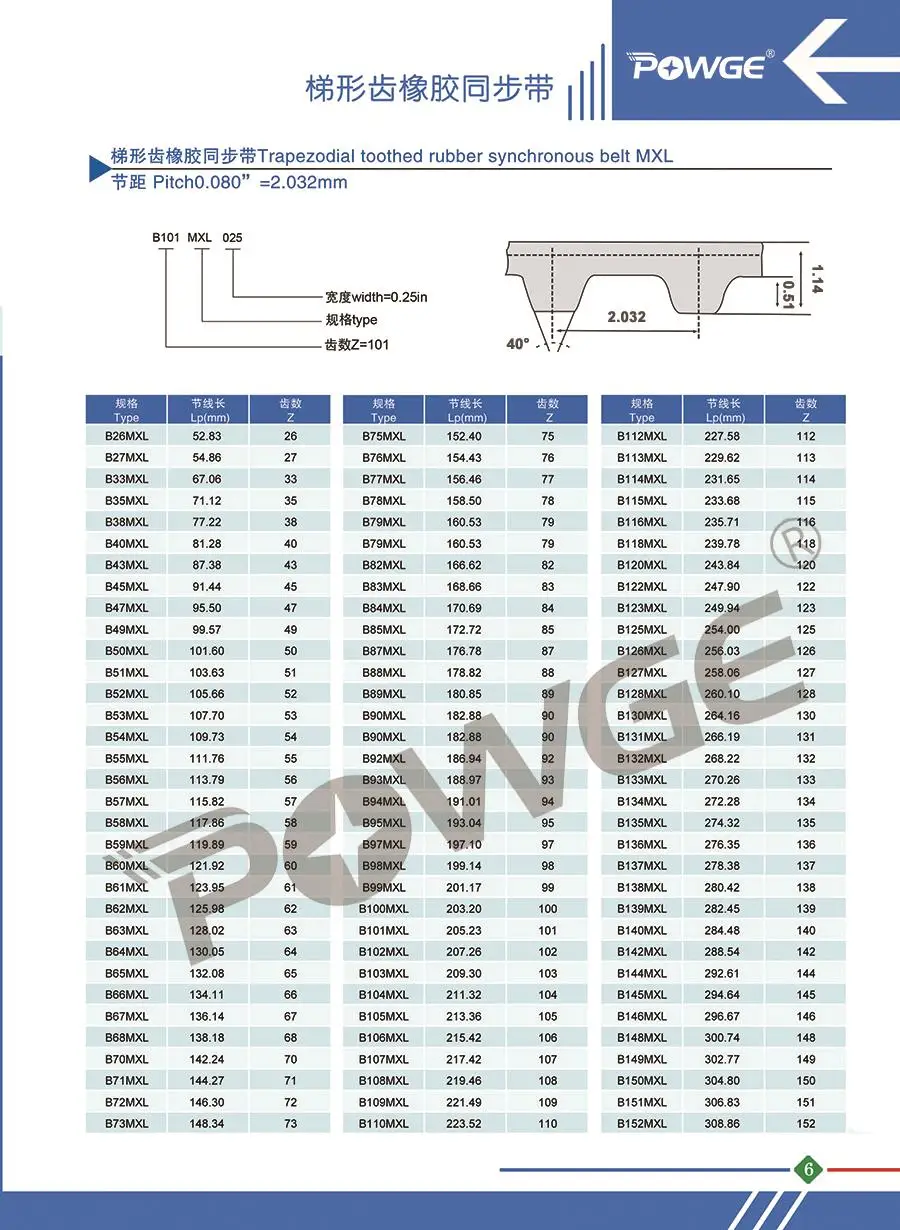 Номер моделиMXL Timing belt B541/B544/B546/B550/B556/B557/B570/B580/B583/B591/B592