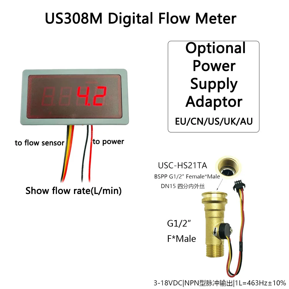 12 В US308M тотализатор потока + USC-HS21TA 1-30 лмин G12 "отображение расхода потока и счетчик частоты Датчик потока воды Холла