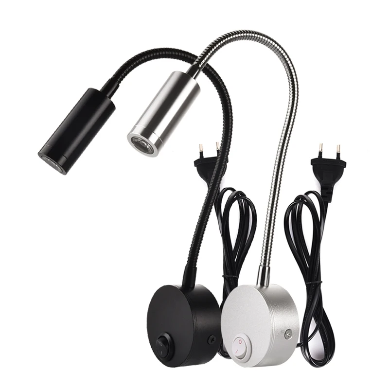 Горячие 3 Вт светодиодные настенные лампы детская лампа для чтения прикроватное освещение AC90-260V Алюминий 360 градусов вращающийся + переключатель и ЕС US Plug