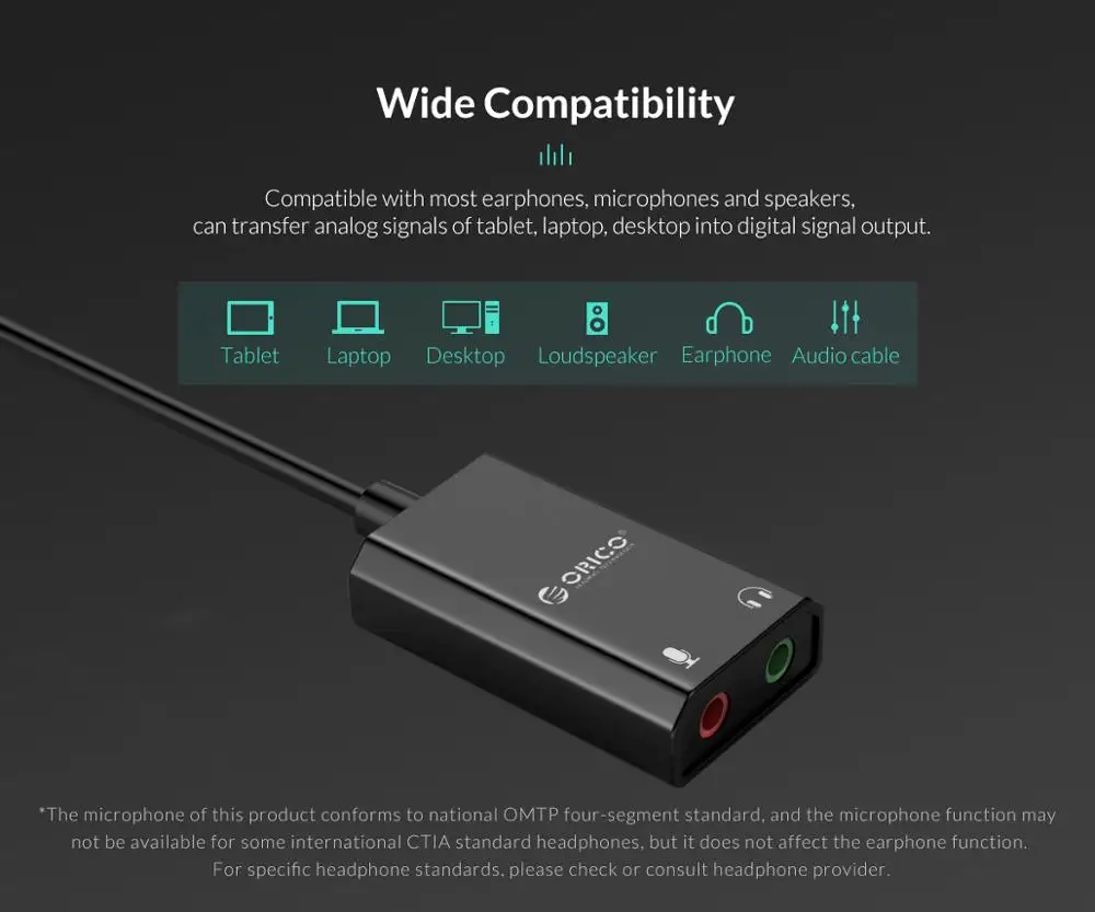 Внешняя звуковая карта ORICO с разъемом для микрофона, 3,5 мм, адаптер аудиоинтерфейса, бесплатный привод для гарнитуры Windows Mac