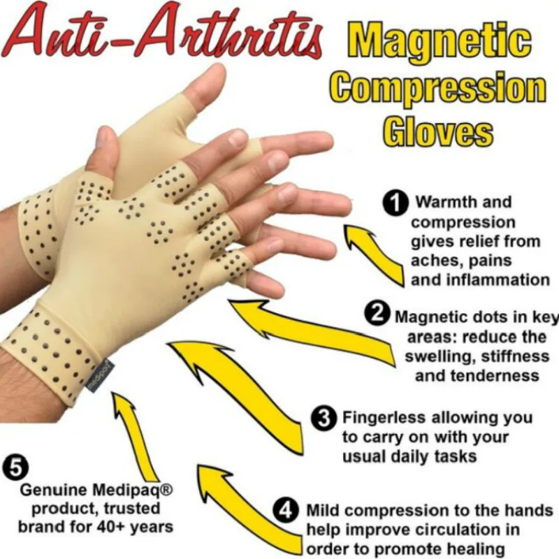 Характеристики:Благодаря особому дизайну вы будете выглядеть неповторимо.Это хороший подарок для вашего возлюбленного, семьи, друга и коллеги.Удобные и легкие перчатки обеспечивают легкое сжатие и массирование.Не мешает повседневной работе.Помогает улучшить кровообращение, ускоряет естественный процесс заживления.Они предлагают концентрические круглые магниты, обеспечивая уникальную конфигурацию магнитного поля, которая выравнивает ионы в вашем потоке крови для улучшения кровообращения.Этот дополнительный поток крови ускоряет заживление, уменьшает боль и омолаживает ваши руки, а также обеспечивает оптимальное магнитное поле проблемной области.Облегчает боль в руках, вызванную артритом, скованностью или общим чрезмерным использованием.Обеспечивает нежное сжатие и массирование для облегчения в течение всего дня.Усиливает кровообращение и дает термотерапию.Эластичный материал светильник легкого сжатия и изоляции рук.Дизайн без пальцев для гибкости в повседневных работах.Подходит для мужчин и женщин. Один размер подходит всем.Идеально подходит для больных артритом.Не подходит для пользователей кардиостимуляторов или во время беременности.Тип: перчаткиМатериал: спандексУход За Одеждой: ручная стирка, машинная стиркаРазмер: один размерПримечание: Из-за разницы в освещении и настройках экрана цвет изделия может немного отличаться от изображения.Посылка1 пара перчаток