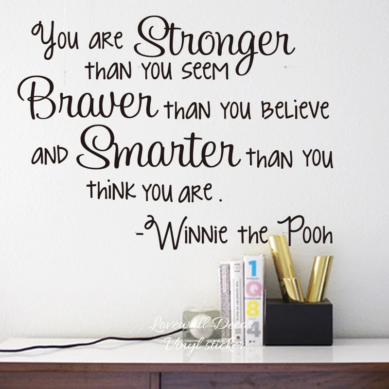 Сильный храбрости умнее Винни Пух мотивирующая Цитата Настенная Наклейка для гостиной Детская комната виниловое искусство для детской комнаты