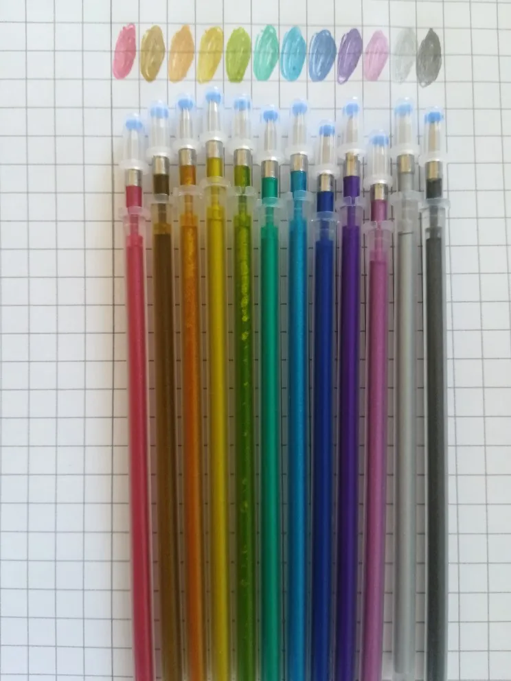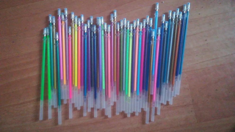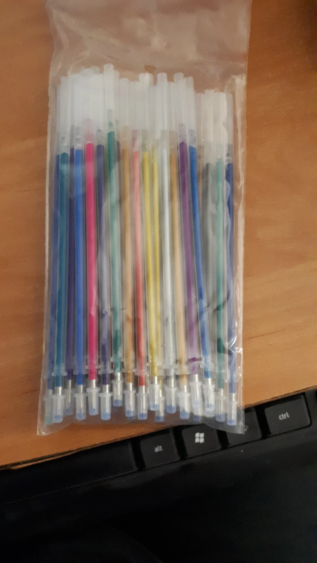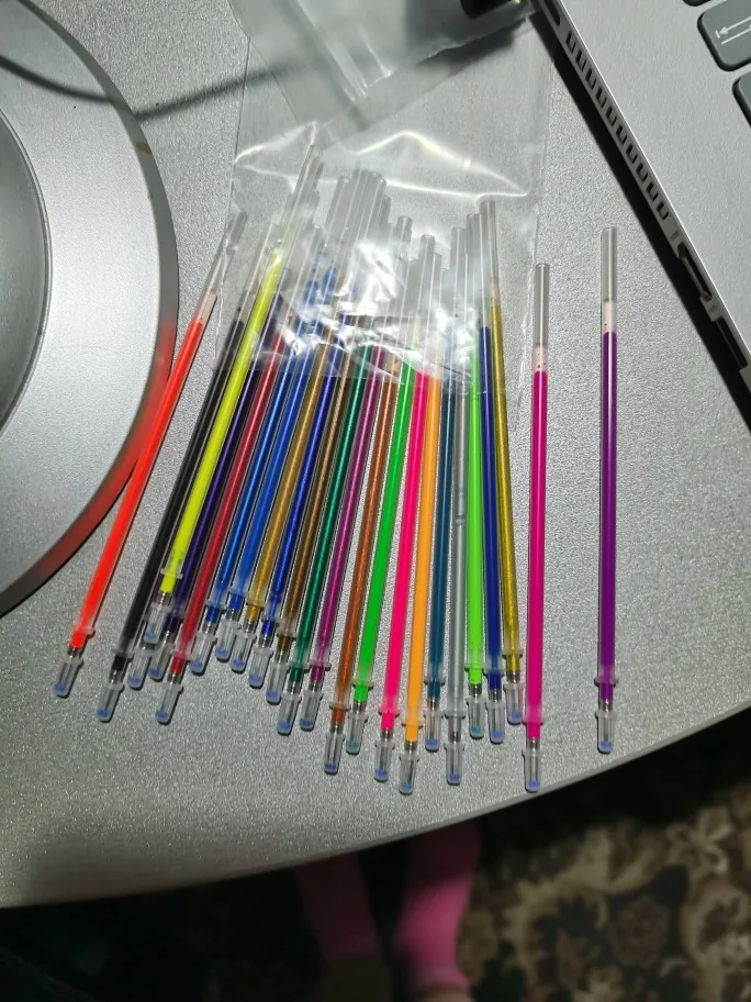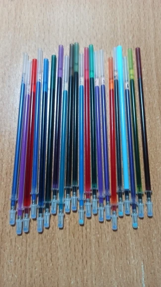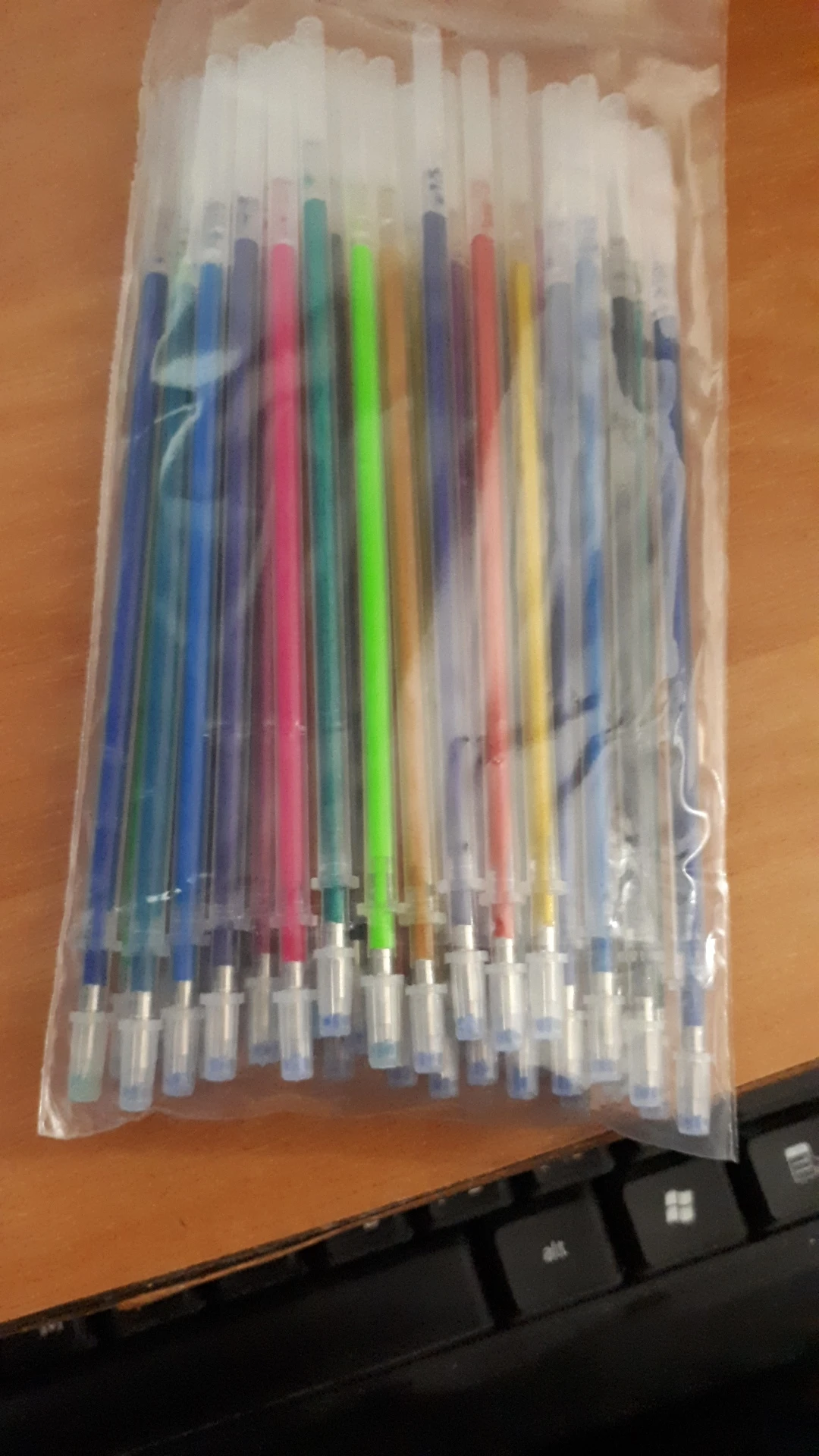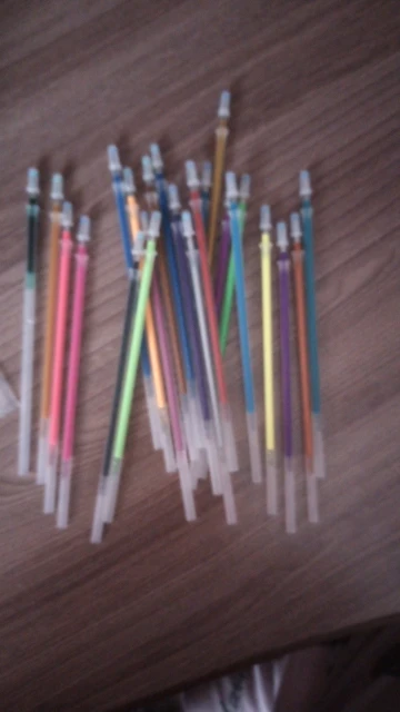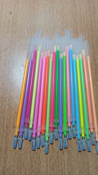 Стержни очень красивые! Цвета яркие, сочные, не повторяются. В наборе пасты неоновых цветов, с блеском, эффекта металлик. Доставка очень быстрая, всего две недели. Товаром довольна. Продавец отправил быстро, трек полностью отслеживался. Рекомендую!!!