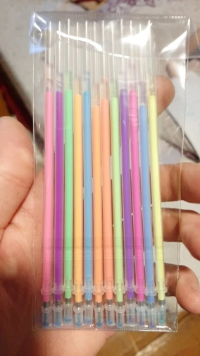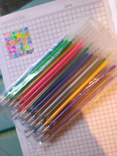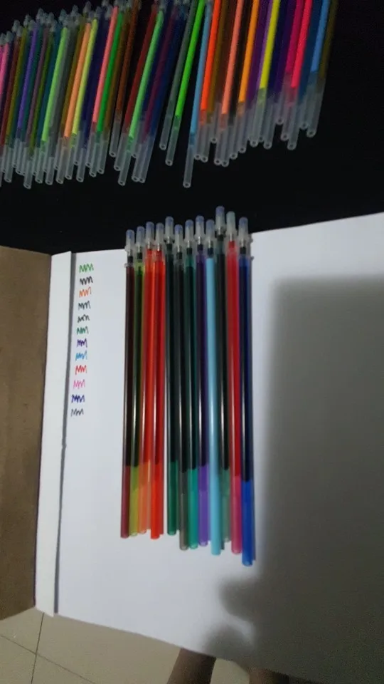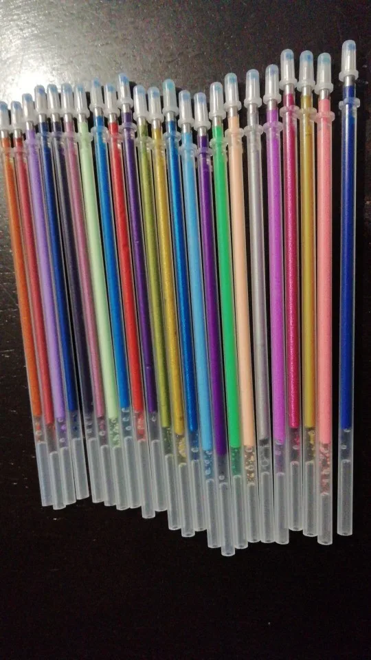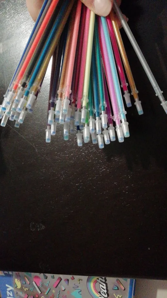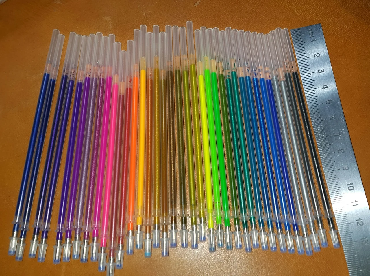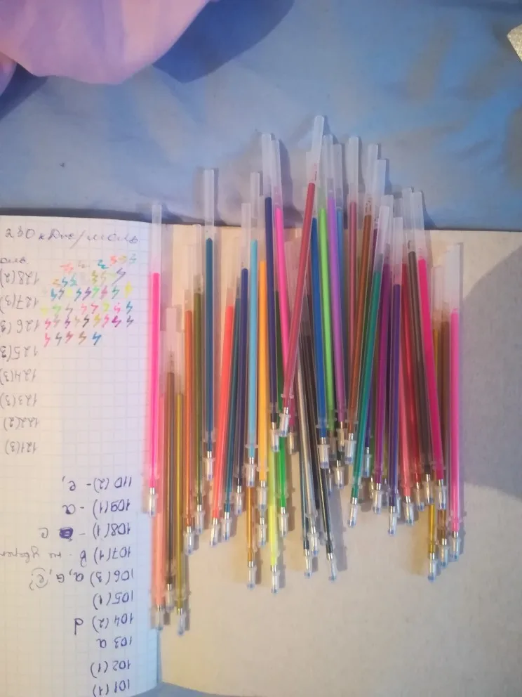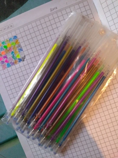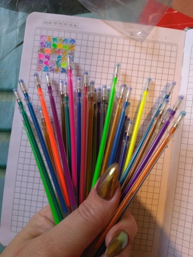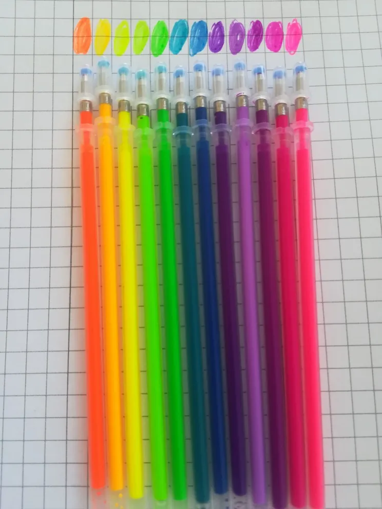 Стержни очень красивые! Цвета яркие, сочные, не повторяются. В наборе пасты неоновых цветов, с блеском, эффекта металлик. Доставка очень быстрая, всего две недели. Товаром довольна. Продавец отправил быстро, трек полностью отслеживался. Рекомендую!!!