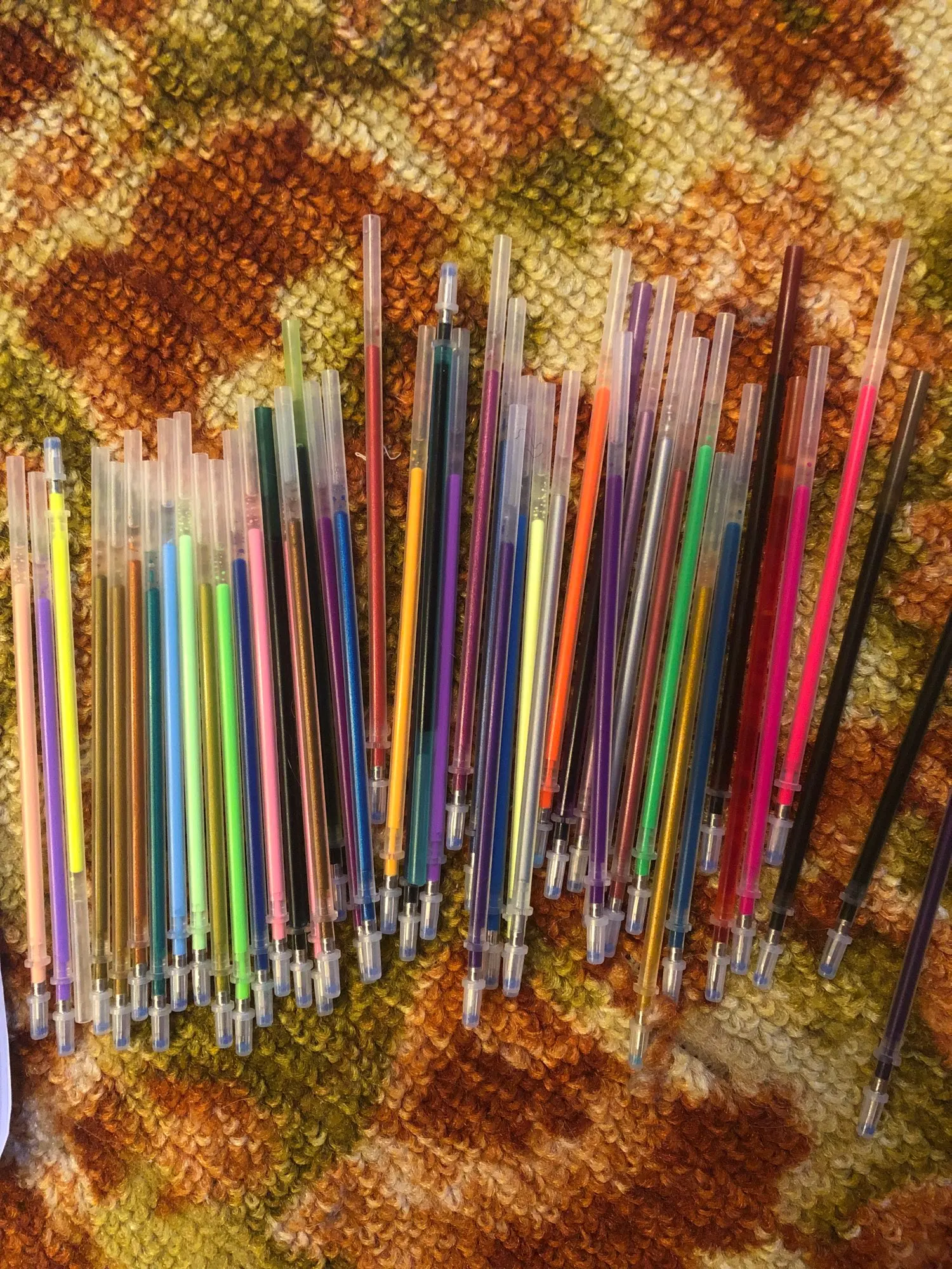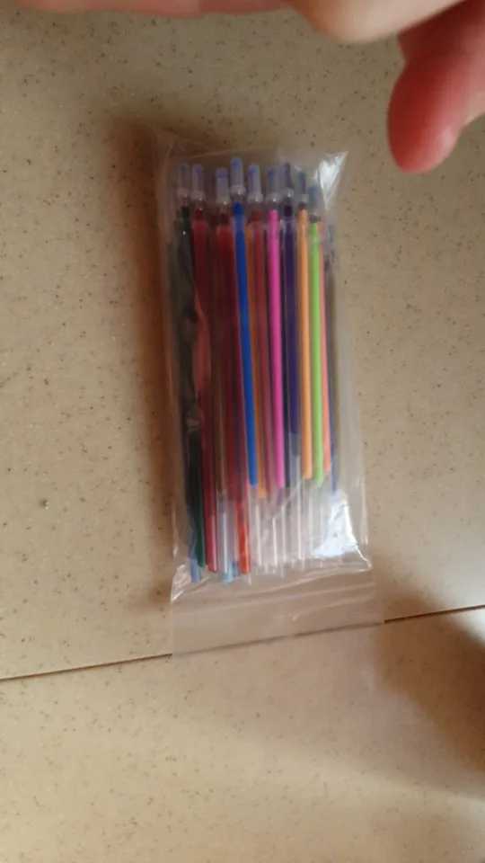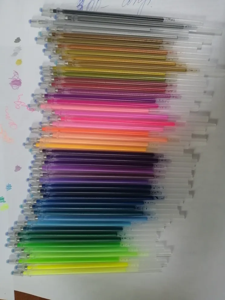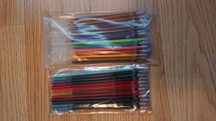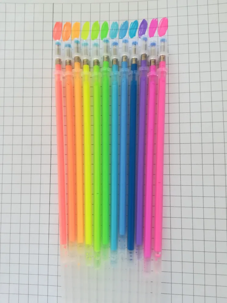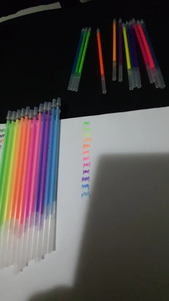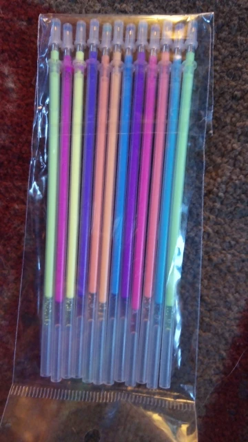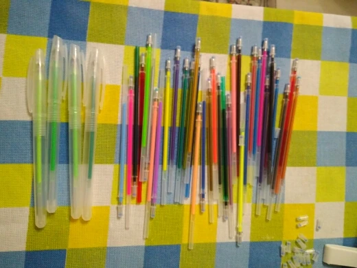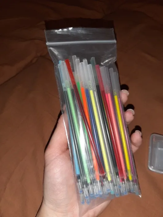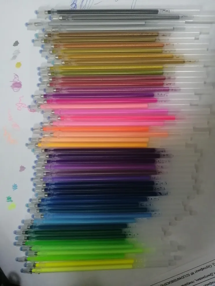 Стержни очень красивые! Цвета яркие, сочные, не повторяются. В наборе пасты неоновых цветов, с блеском, эффекта металлик. Доставка очень быстрая, всего две недели. Товаром довольна. Продавец отправил быстро, трек полностью отслеживался. Рекомендую!!!