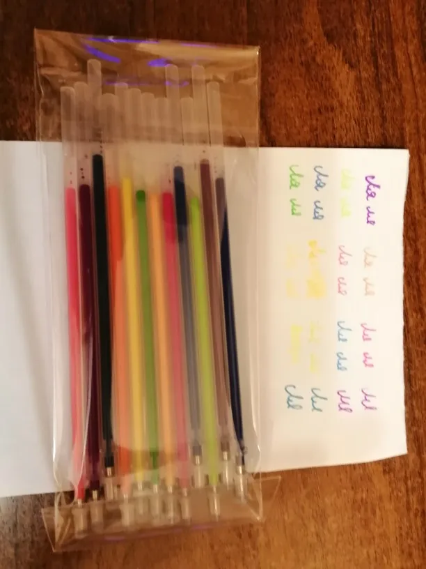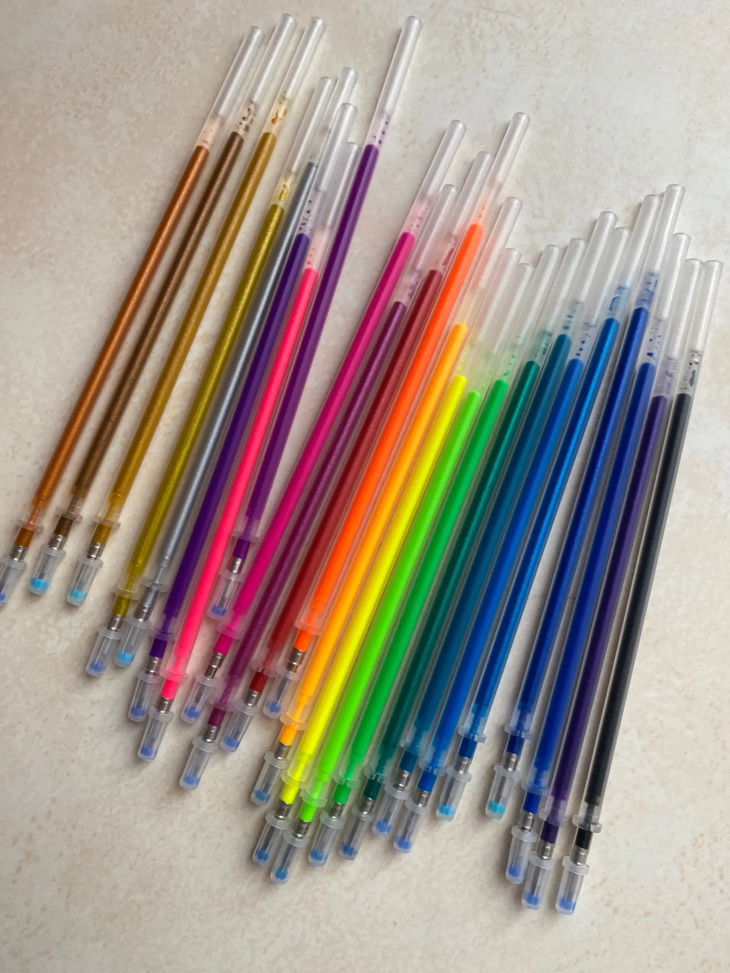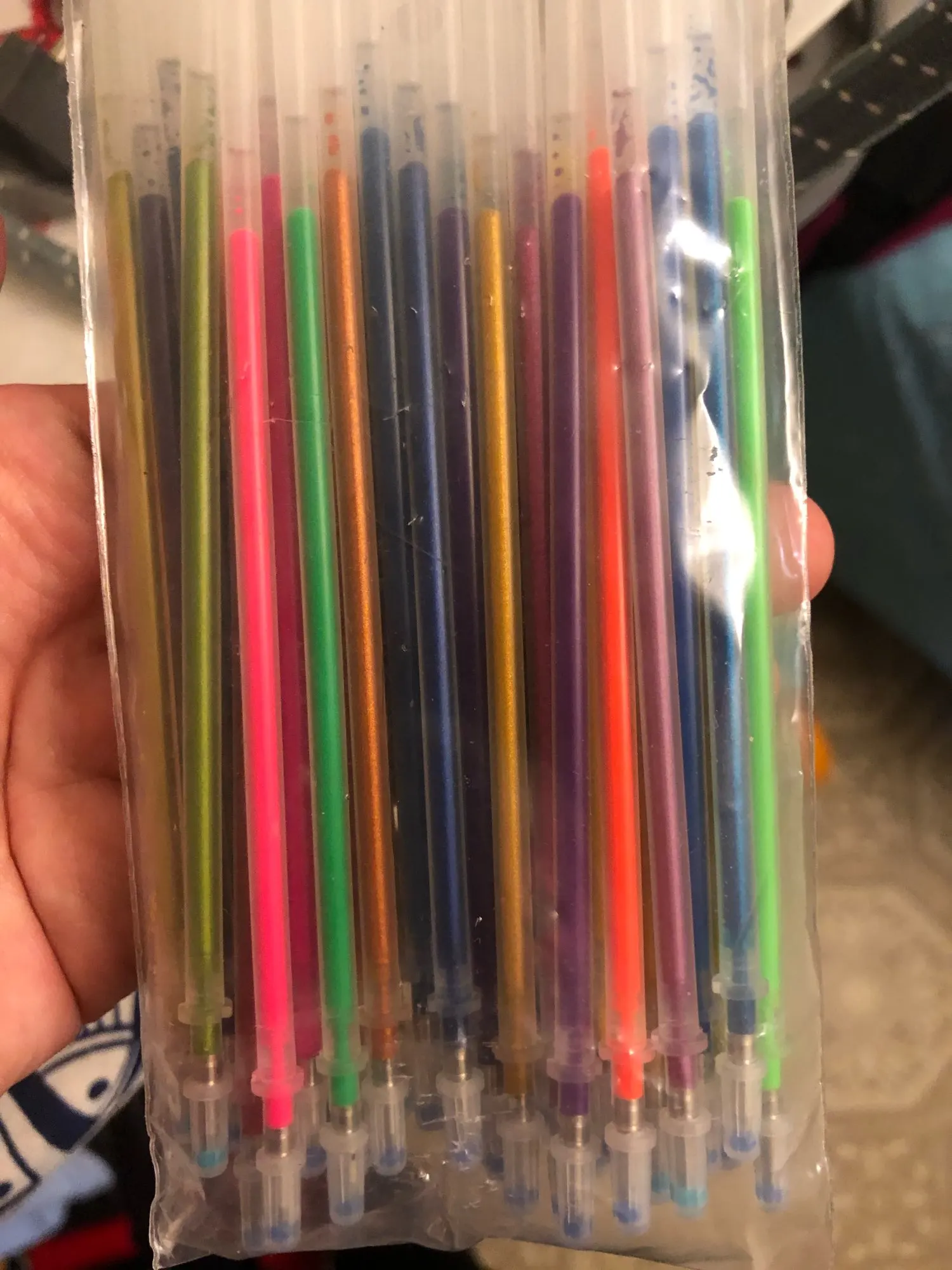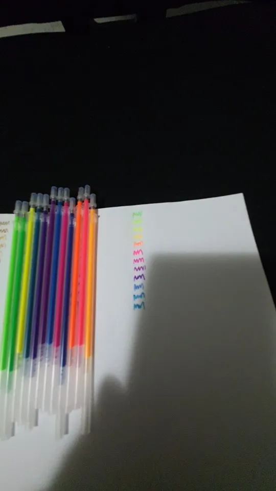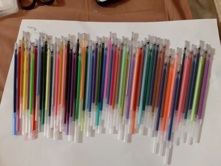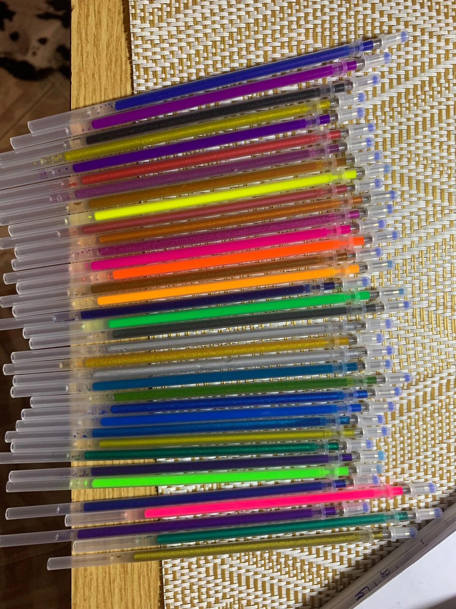 Стержни очень красивые! Цвета яркие, сочные, не повторяются. В наборе пасты неоновых цветов, с блеском, эффекта металлик. Доставка очень быстрая, всего две недели. Товаром довольна. Продавец отправил быстро, трек полностью отслеживался. Рекомендую!!!