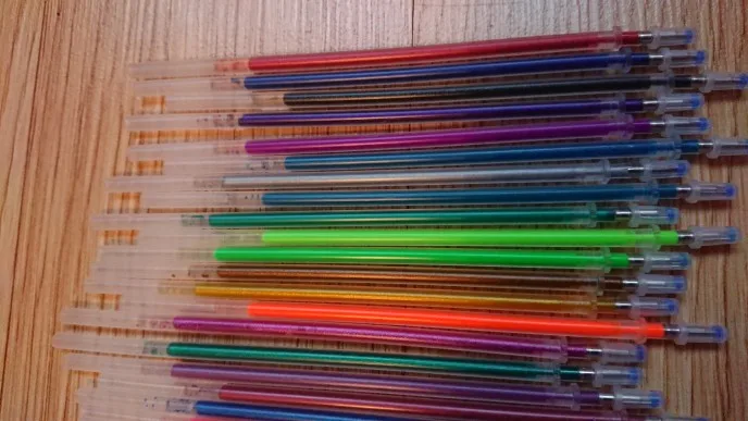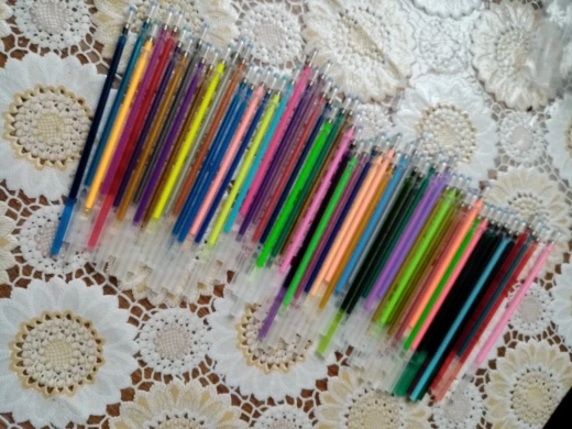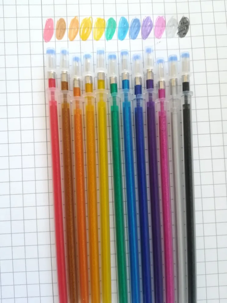 гелевые пасты супер, яркие, пишут отлично, есть те которые блестят ими очень хорошо на черной бумаге рисовать))) спасибо мы с детьми довольны