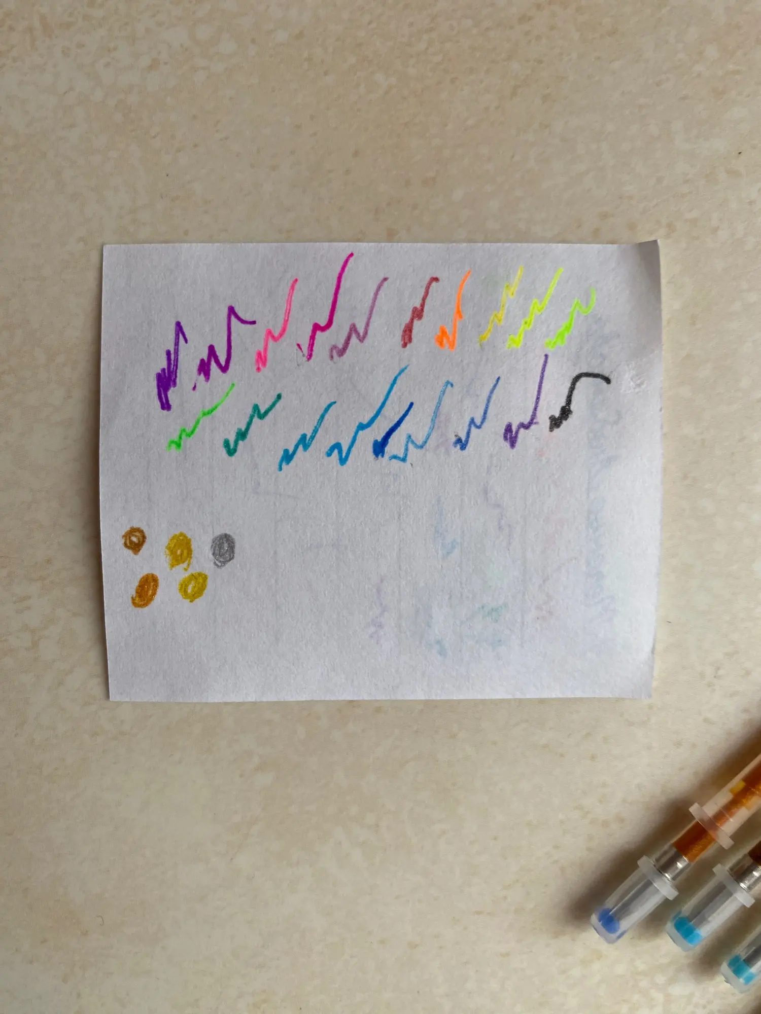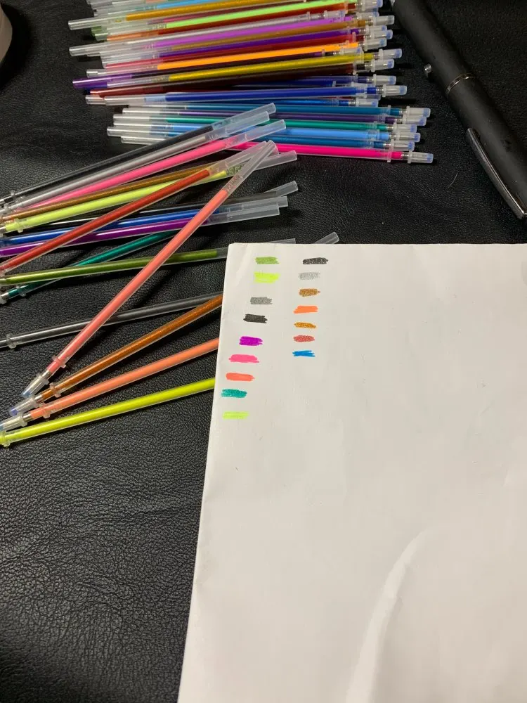 Выбор интересного цвета. Некоторые из них сверкают. Чернила легко текают, иногда они могут быть слишком легкими, так что вы довольно быстро выходите из чернил.