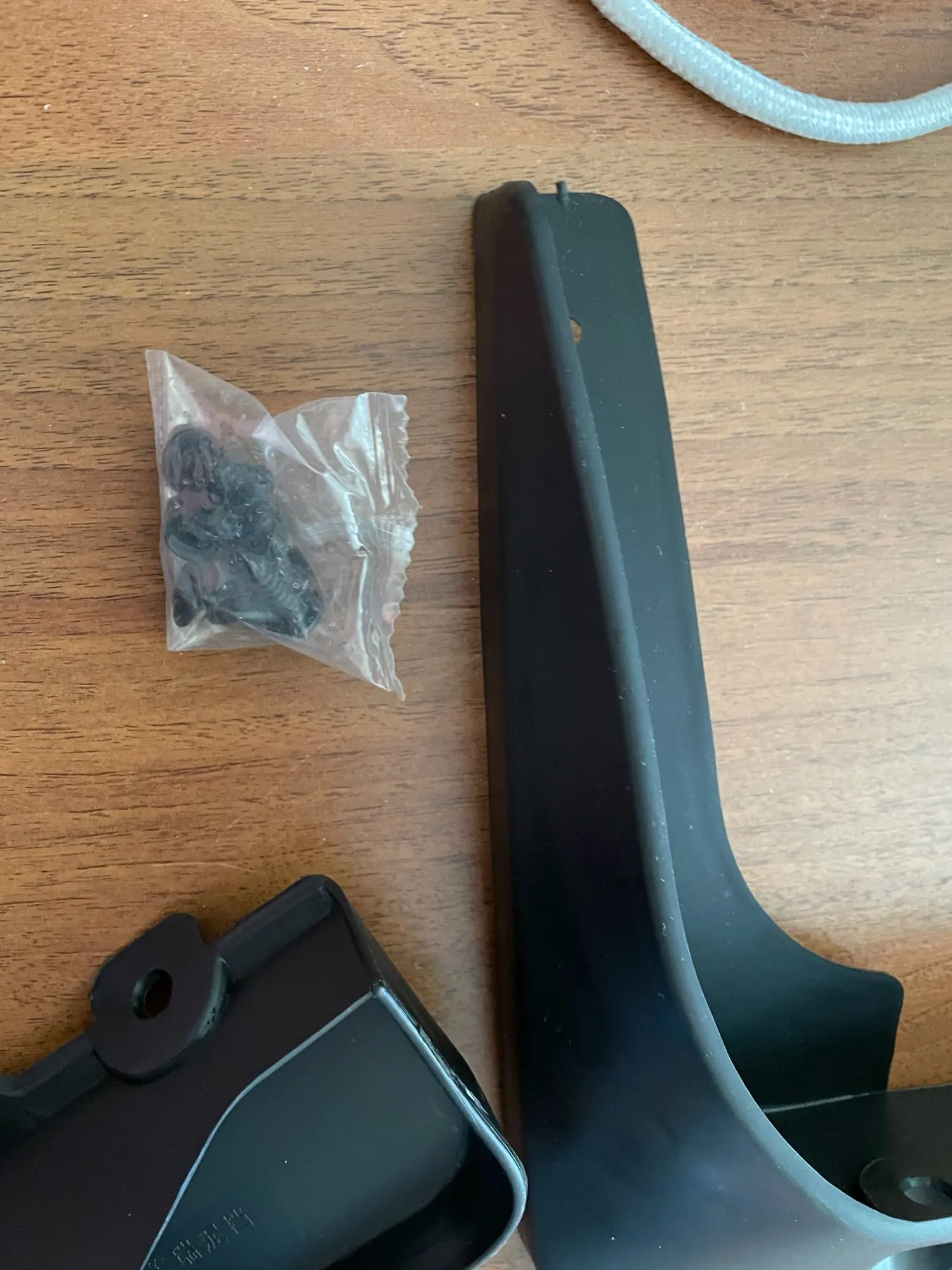 Доставка 2 недели, один брызговик пришёл слегка поцарапанный, но это вина почты России. В комплекте также идут шурупы. После установки дополню отзыв.