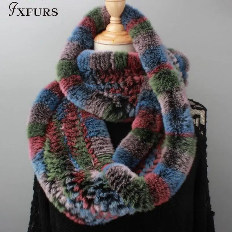 FXFURS 2021 Модный Новый женский шарф из меха бесконечности, Круглый длинный шарф из кроличьего меха, зимний теплый уличный модный шарф из меха кролика рекс