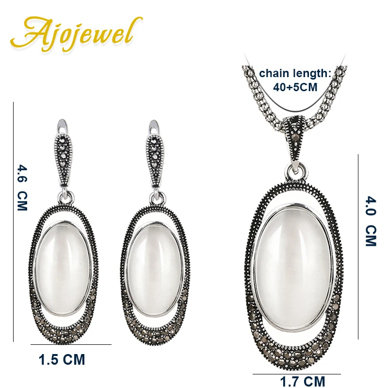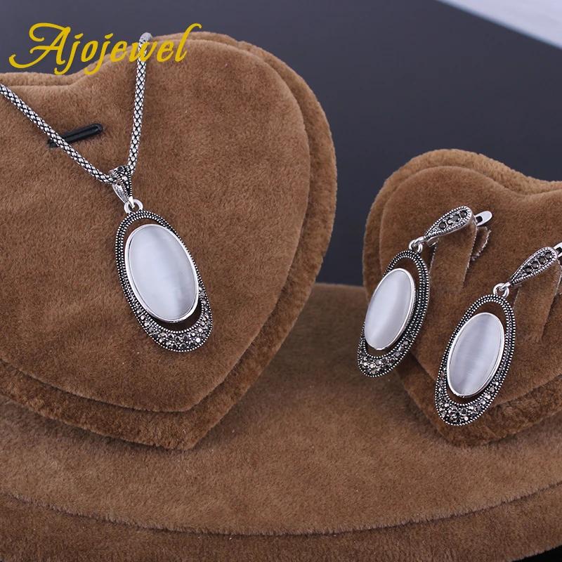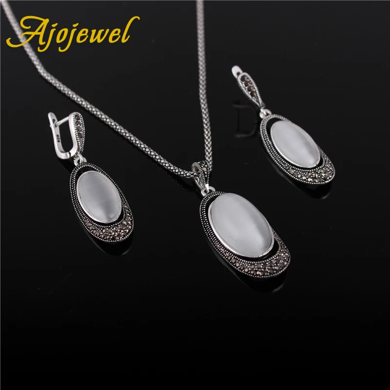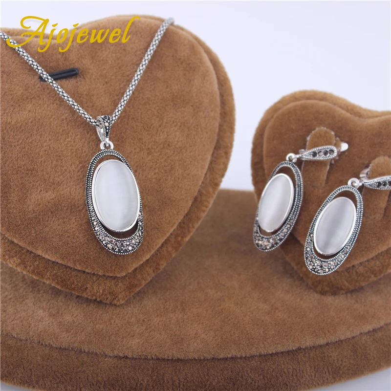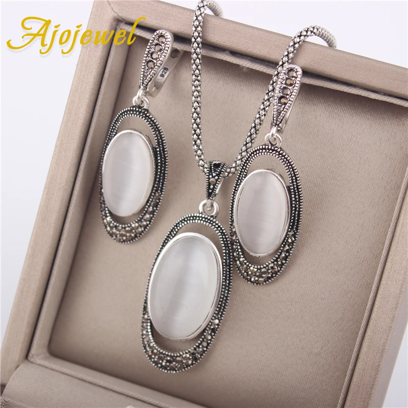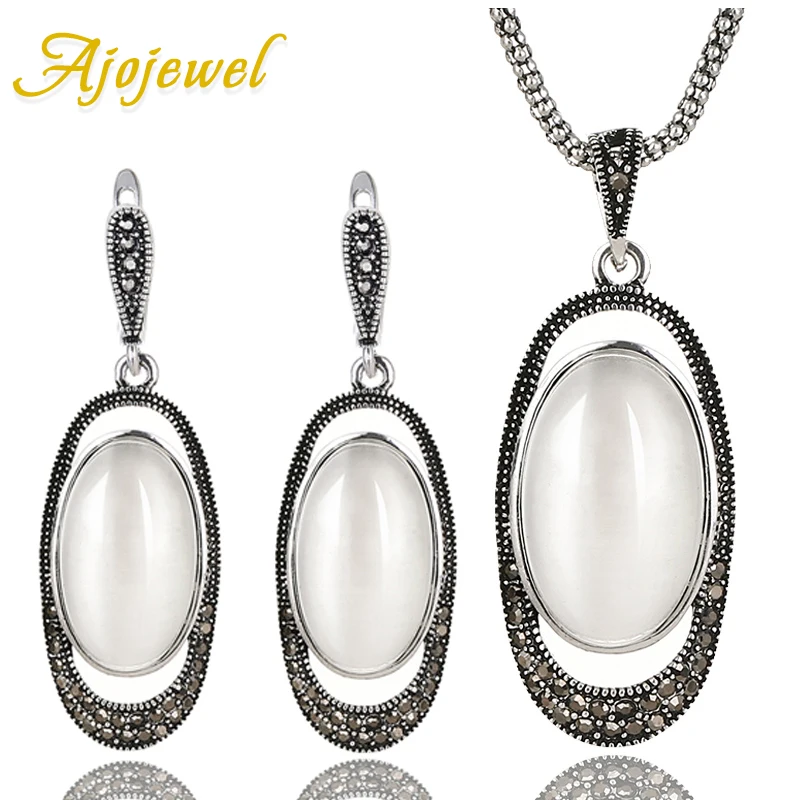 Ajojewel Новое поступление белый опал ювелирные наборы винтажный комплект ювелирных изделий камень серьги ожерелье и кулон