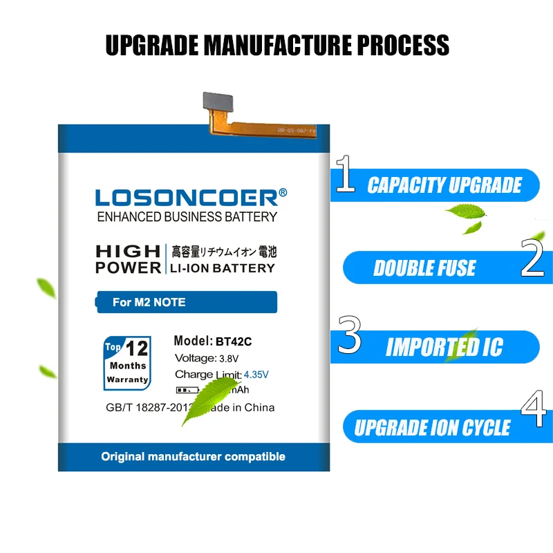Аккумулятор LOSONCOER для Meizu M2 Note, 4400 мАч