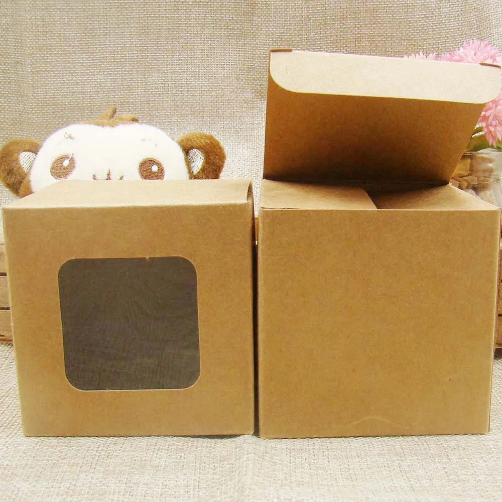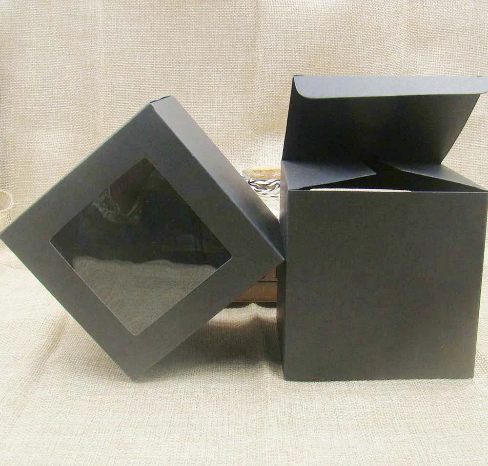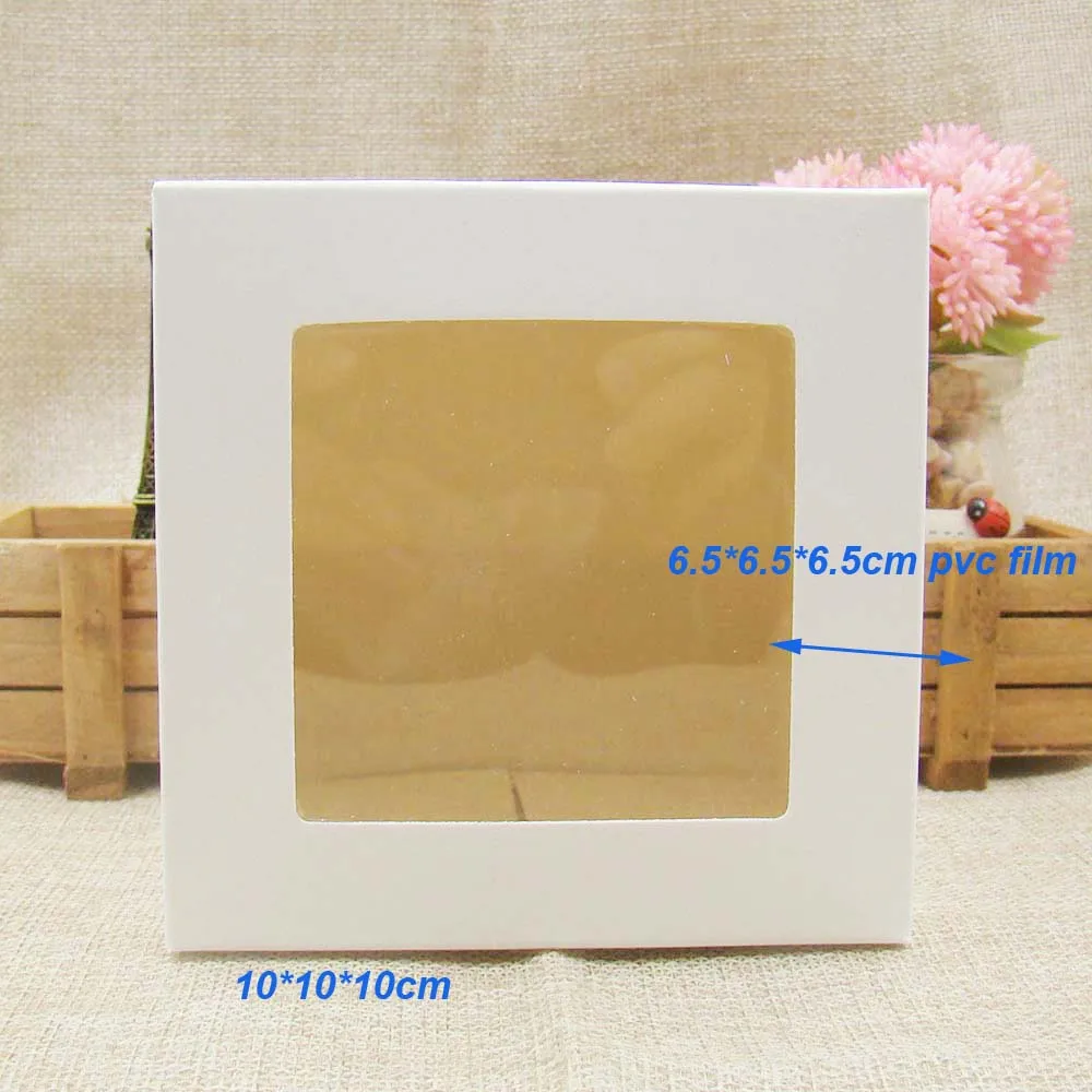 Коробка для подарочных коробок с окном из крафтовой бумаги, 10 х10х10 см, белаячернаяКрафтовая, с окном из ПВХ для конфеттортамылапеченьякексов