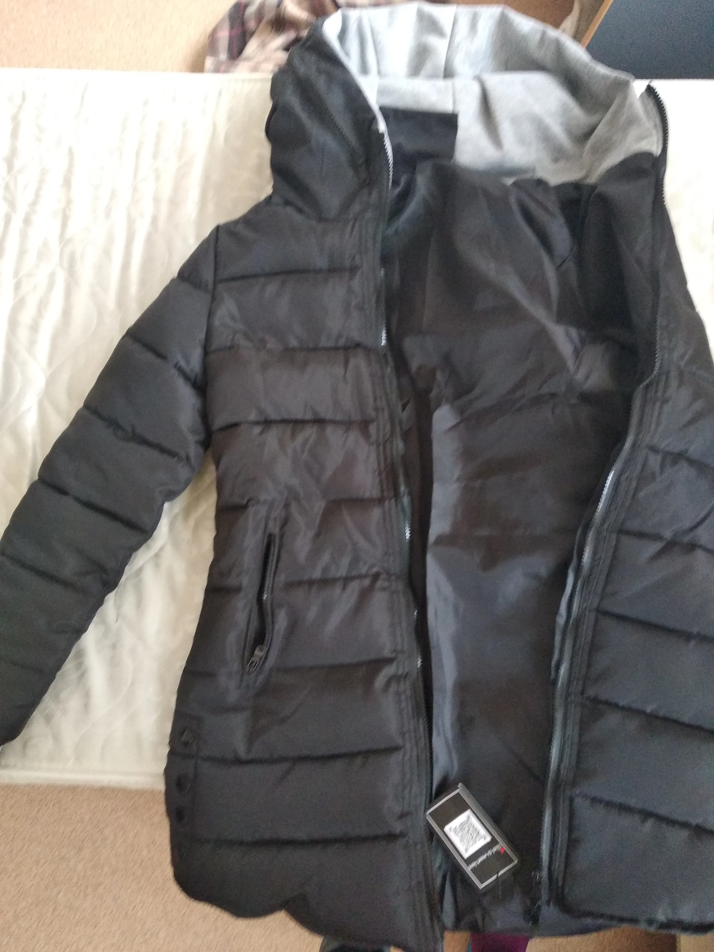 Качество пуховика хорошее! По утеплителю он не сильно тонкий, но и не на сибирскую зиму. Размер взяли XXXL на русский 46-й и в принципе нормально, только если одеть на пальцы манжеты и поднять руки, то немного тянет в подмышках. Хотелось бы на размер больше.