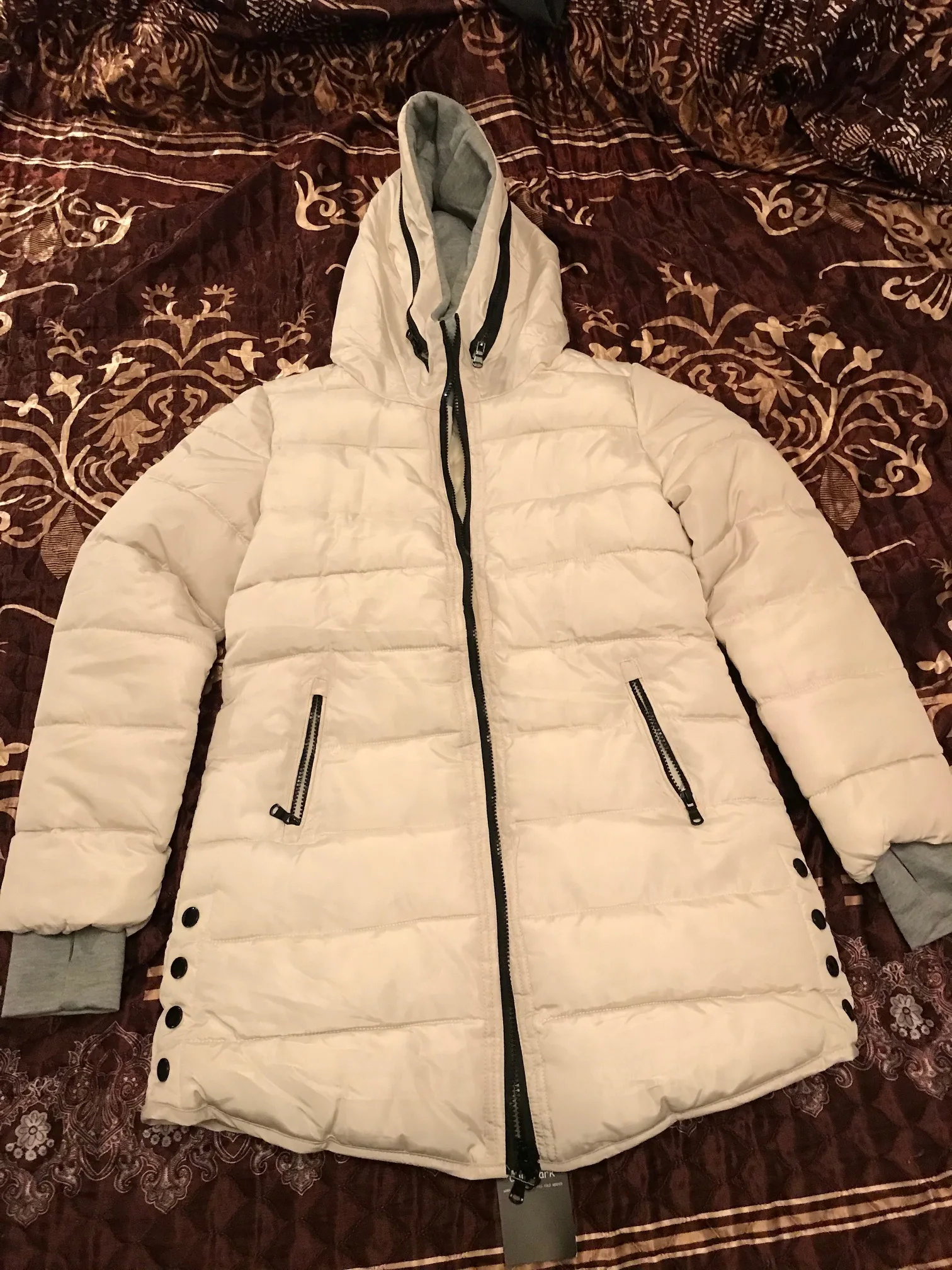 Курточка подошла. Капюшон такой большой, прям классно. Правда цвет отличается, не такая белая как на картинке. Размер подошёл, не впритык. Рост у меня 164 см., ОГ 80 см. Брала XL.