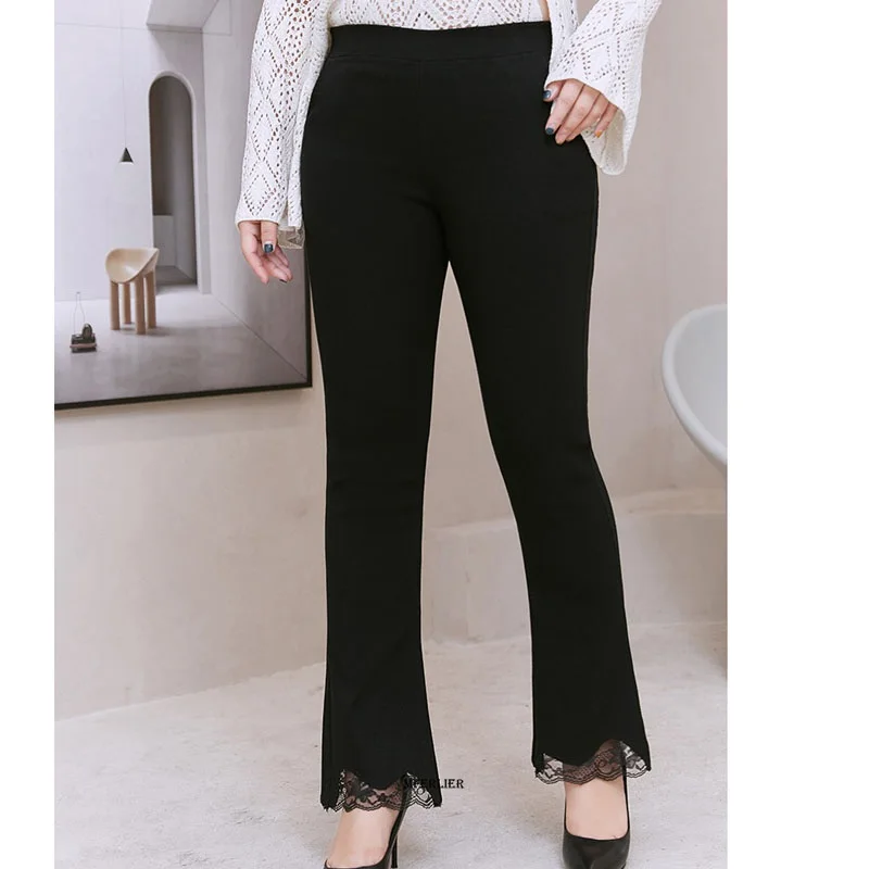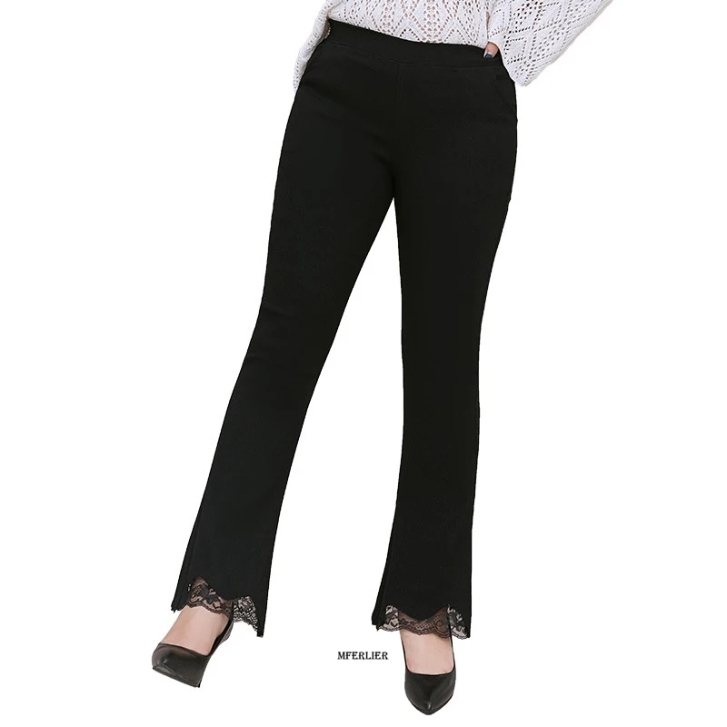 Размер 10XL 150 кг весенние брюки черные женские брюки с высокой эластичной талией модные кружевные брюки женская одежда стандартного размера