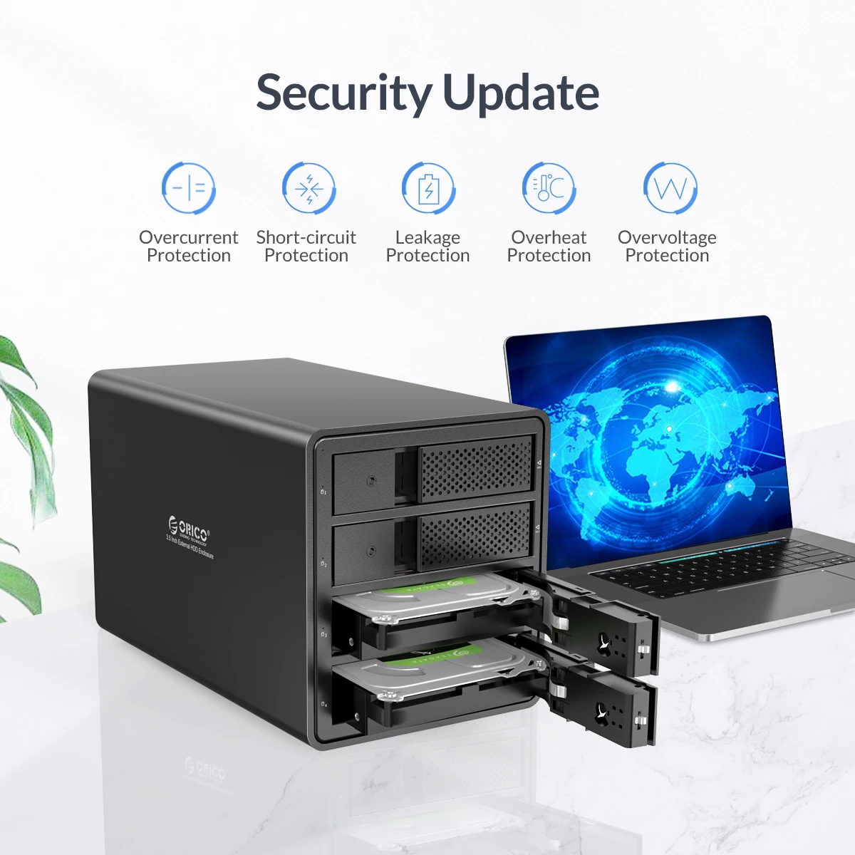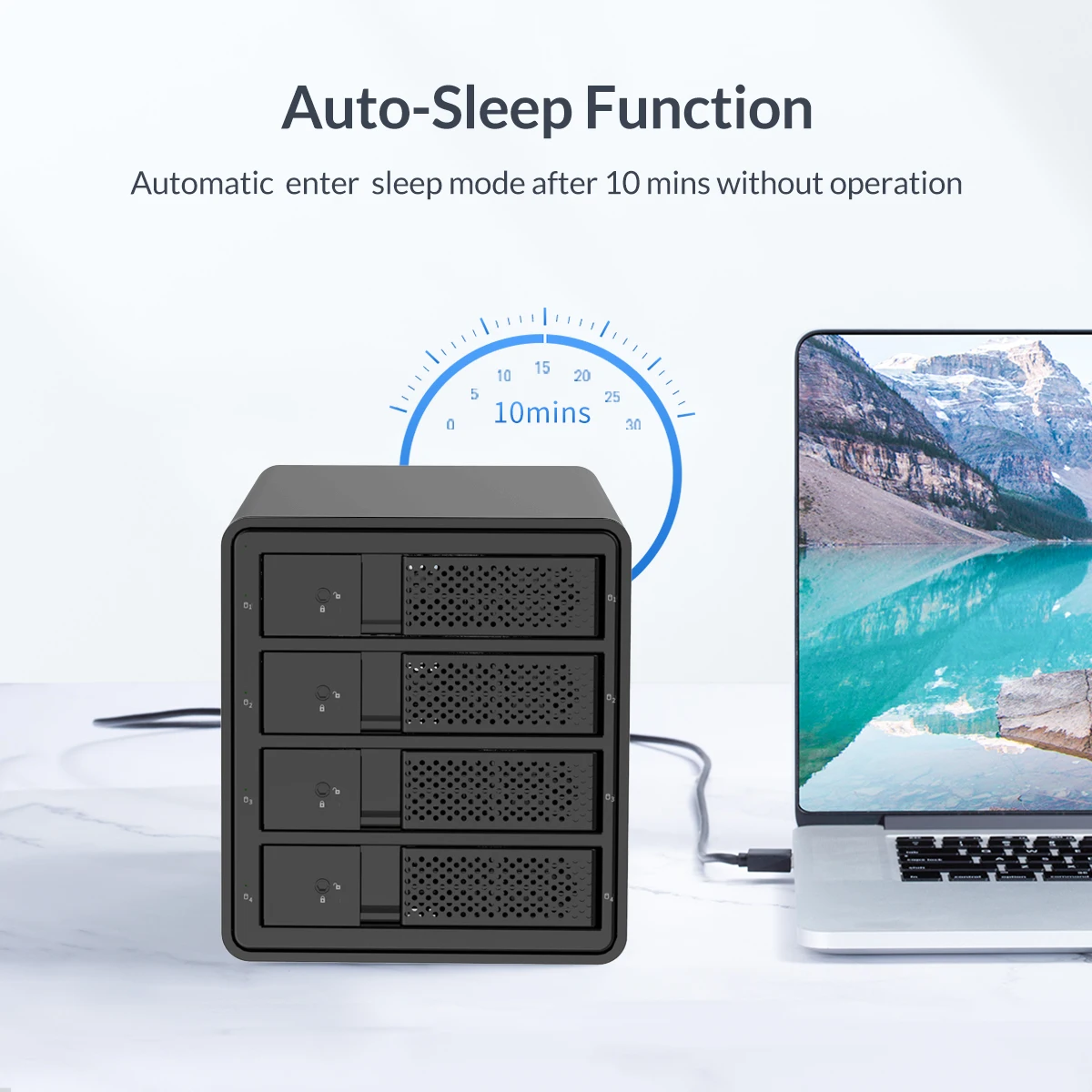 Корпус 4 Bay Raid имеет корпус из алюминиевого сплава и вентилятор, хорошо отведение тепла, толщина до 4 мм, что является твердым и надежным, процесс форсированной конвекции помогает увеличить циркуляцию воздуха и тепловую вентиляцию для эффективного охлаждения привода и всей системы для стабильной работы и увеличенного срока службы.