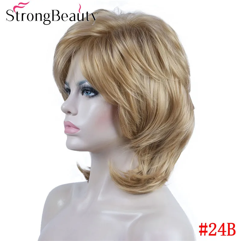 Сильная красота синтетические парики средней длины волнистые волосы для женщин монолитный парик 15 цветов